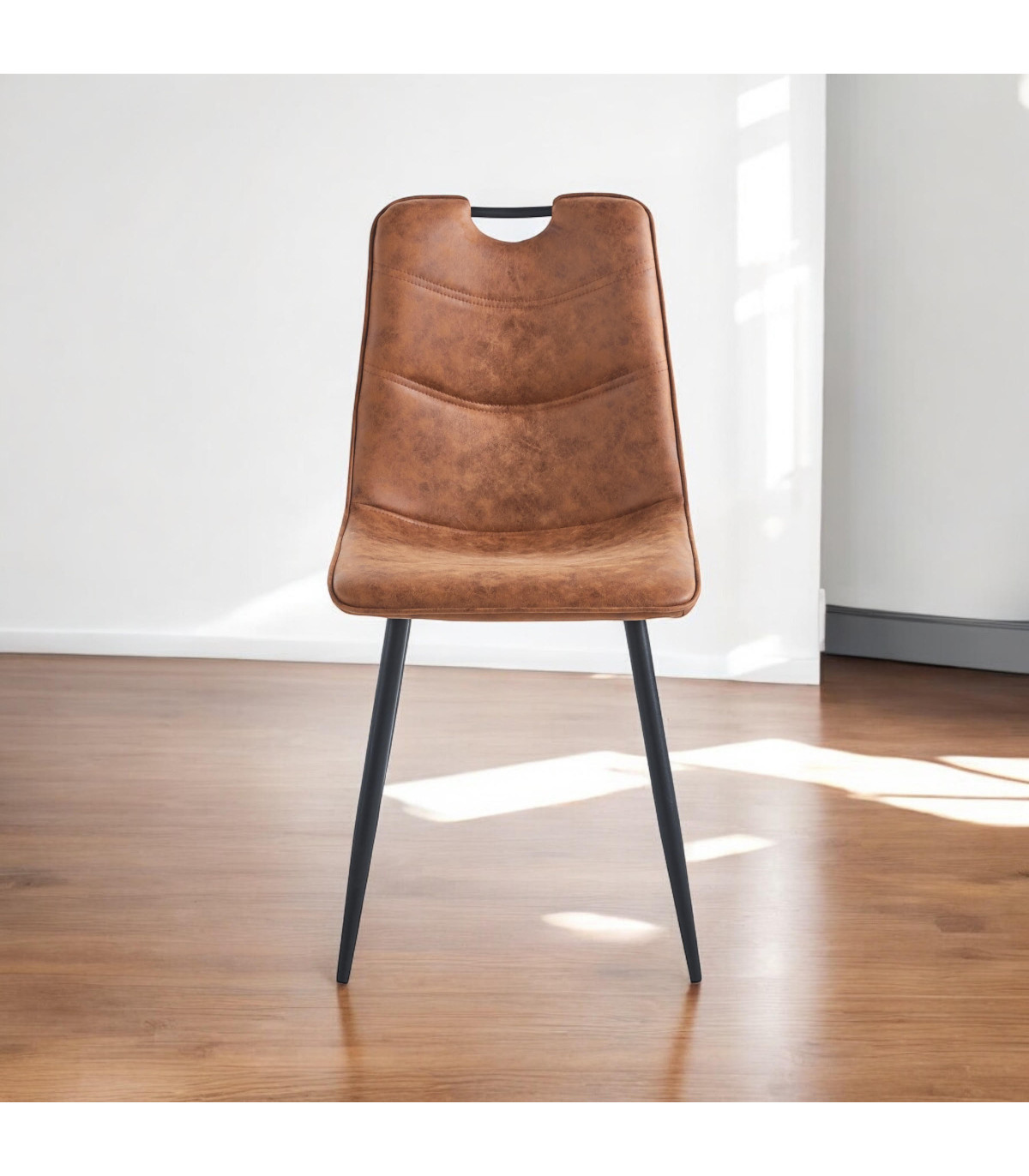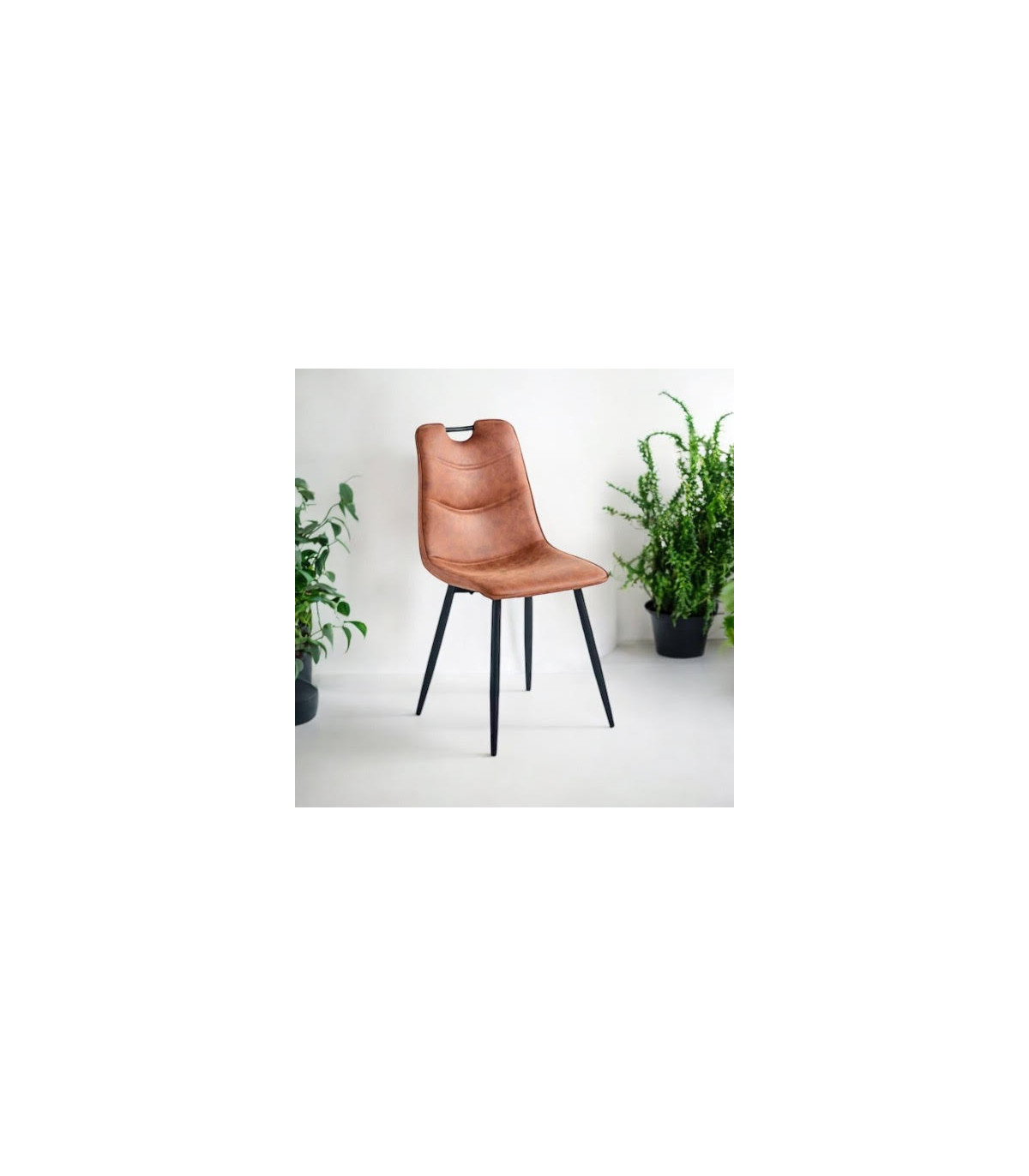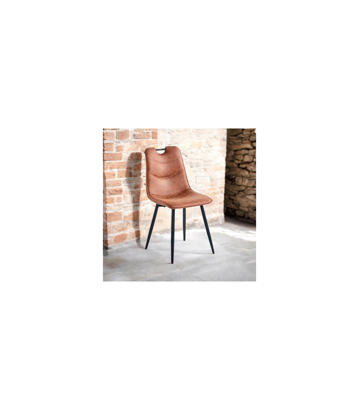 BROWN FAUX LEATHER CHAIR BLACK METAL LEGS