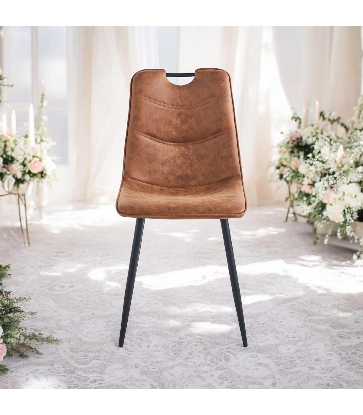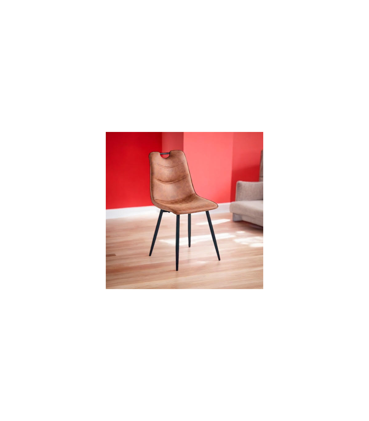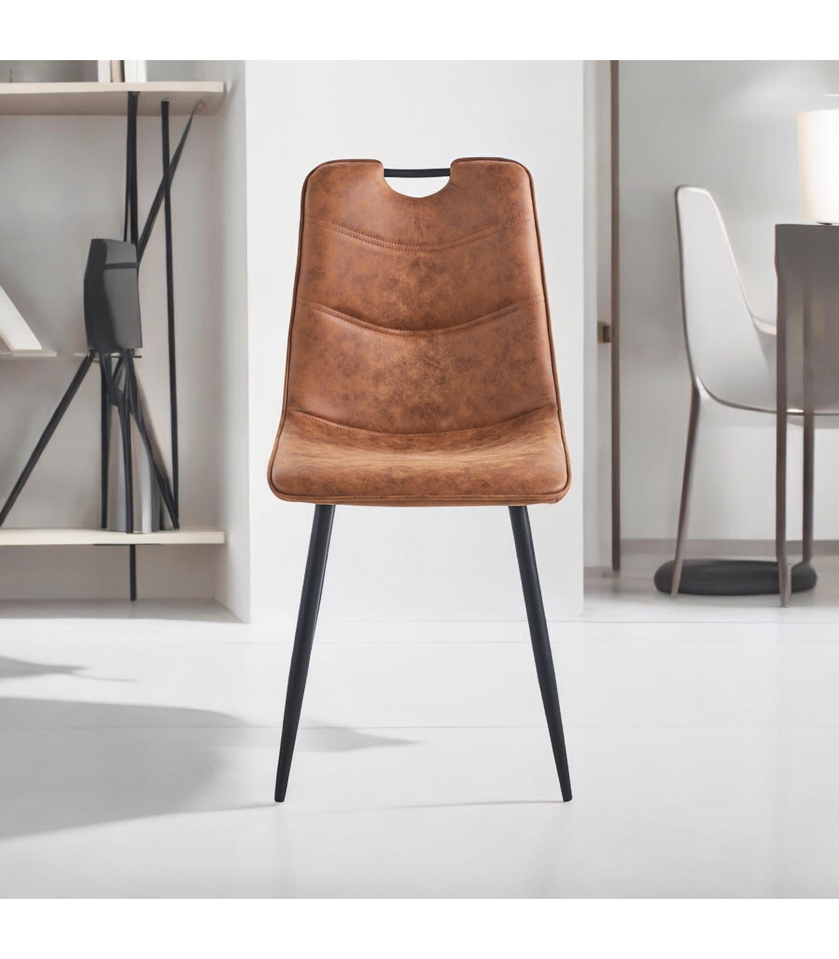 BROWN FAUX LEATHER CHAIR BLACK METAL LEGS