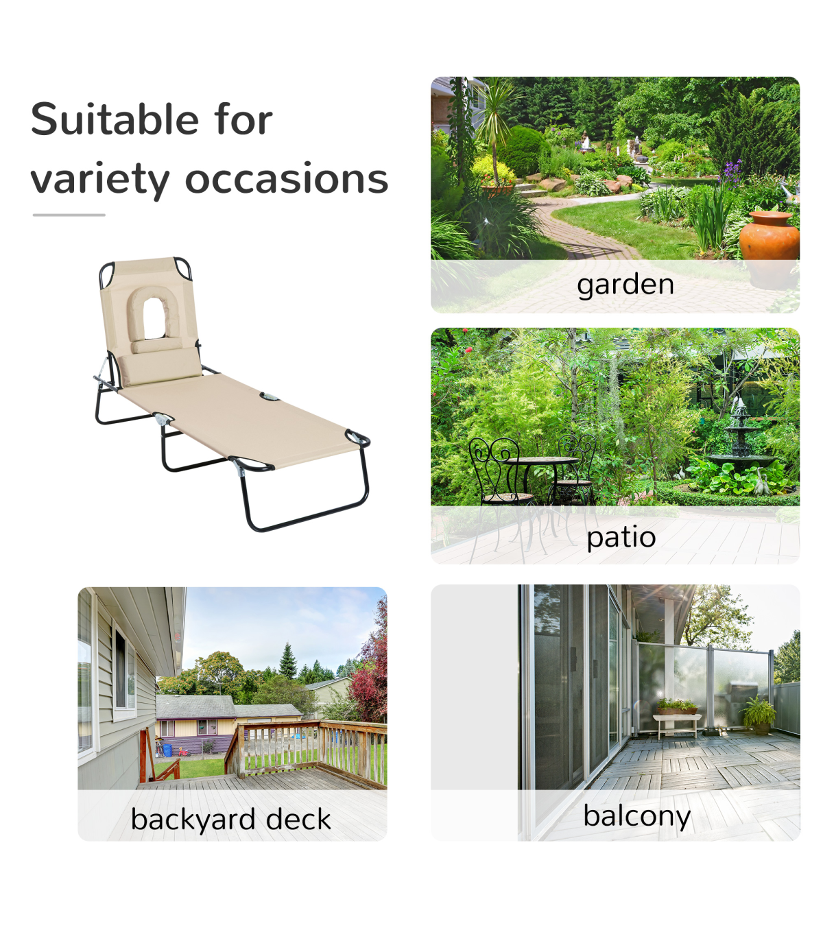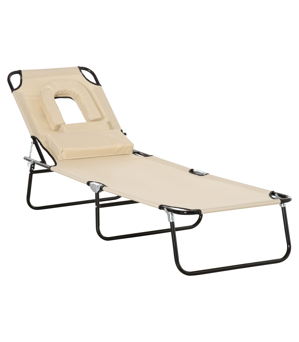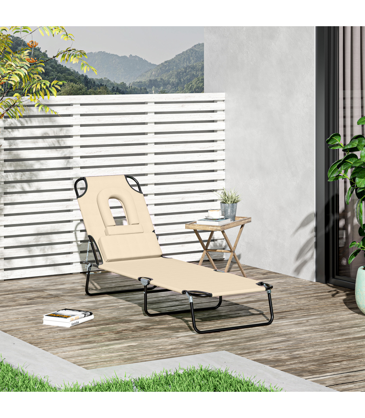 Sun Lounger Foldable Reclining Chair & Reading Hole Recliner Adjustable, Beige