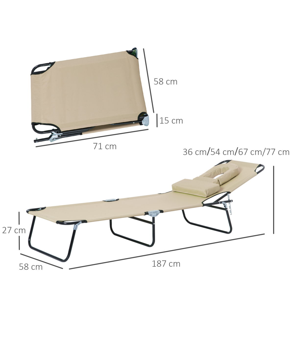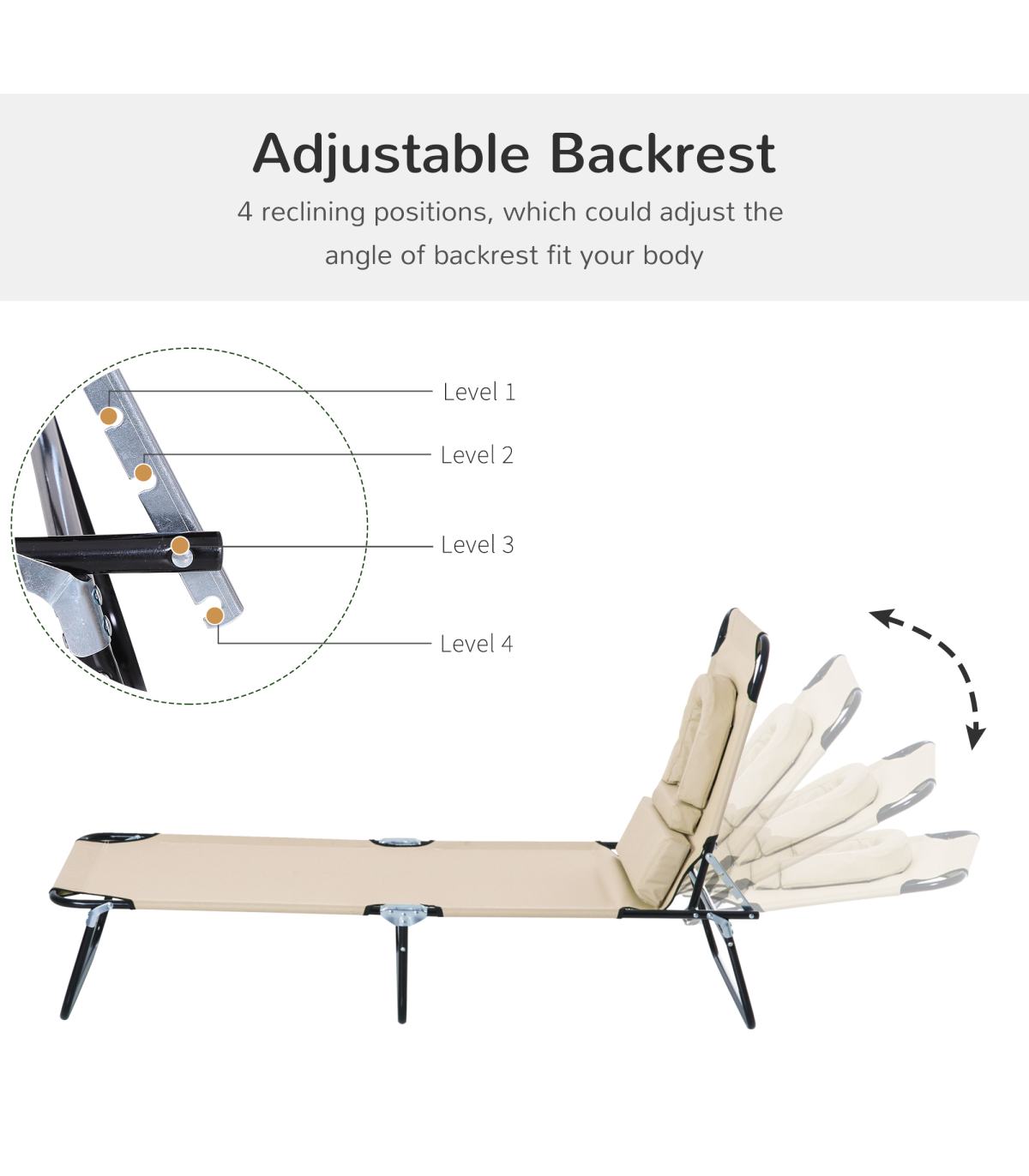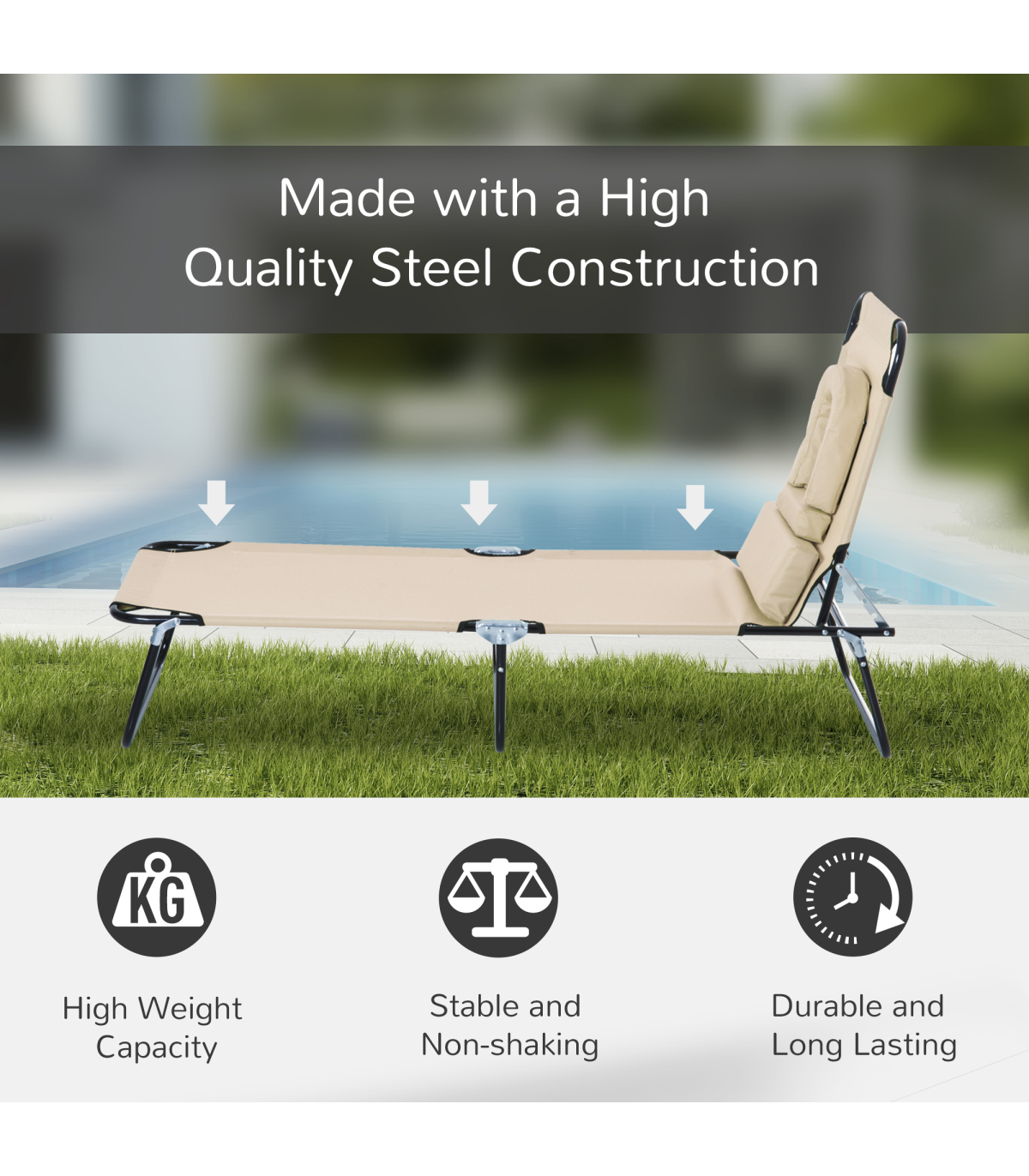 Sun Lounger Foldable Reclining Chair & Reading Hole Recliner Adjustable, Beige