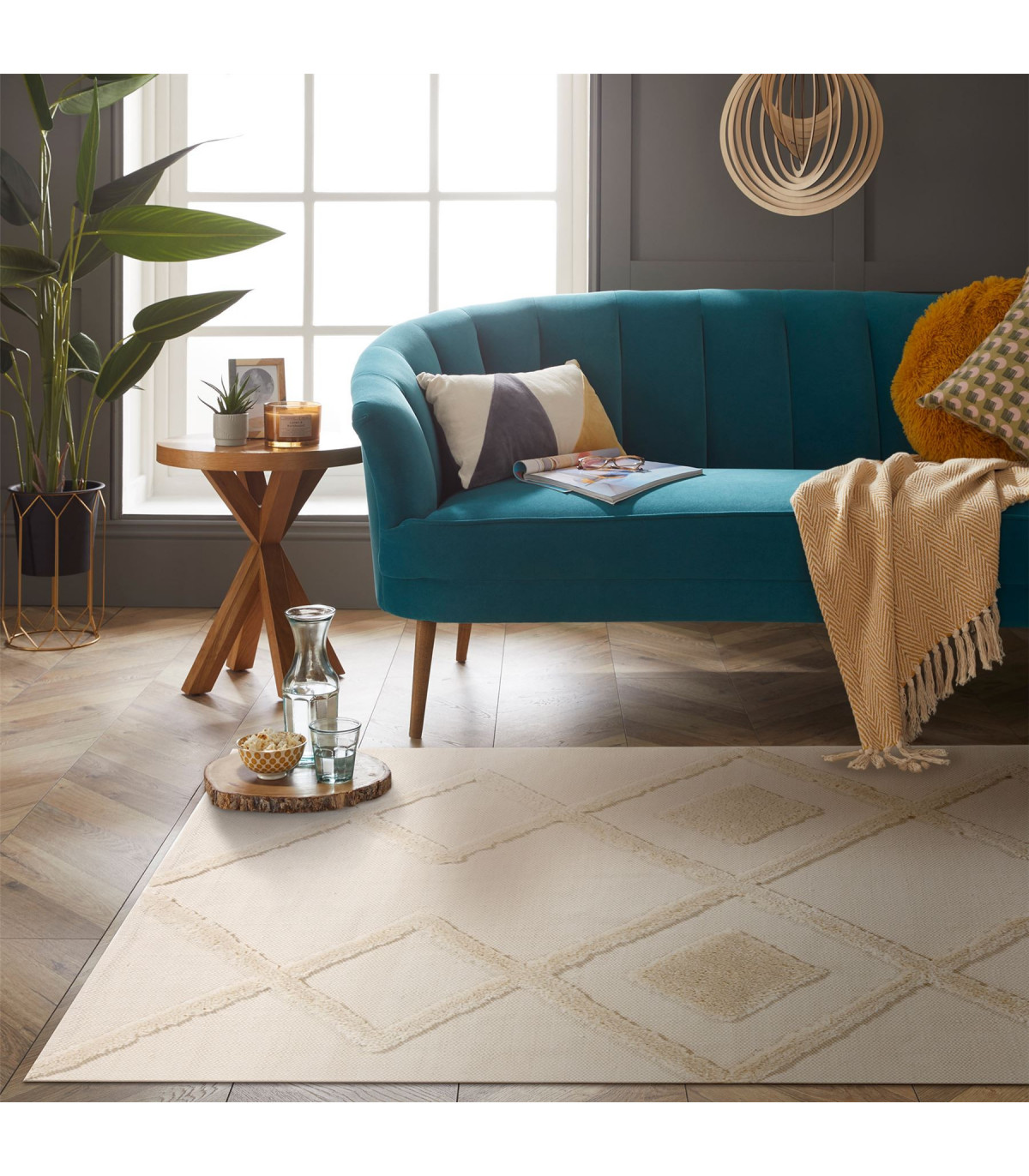 Introducing the Windsor rug from our Revival collection. Our designers have collaborated science with their artistic talent to create rugs made from 100% recycled plastic bottles and to top it off this rug can also be used outdoors. Windsor was hand woven by our artisans featuring tufted diamonds.