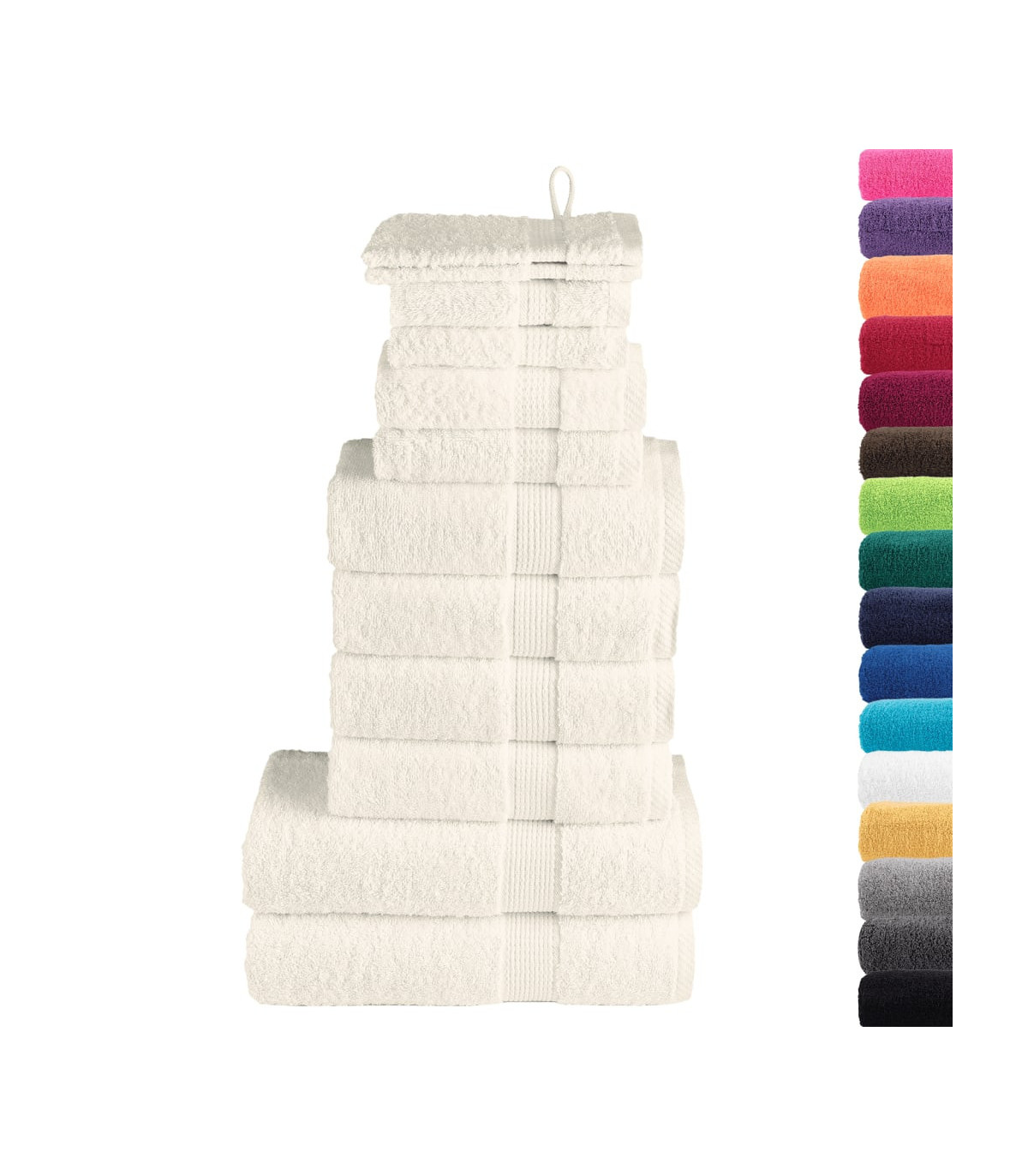 This towel set is ideal for both domestic and commercial use. Super soft and premium material: These towels are made of 100% ring-spun cotton, which is soft, durable, and fade-resistant. They are OEKO-TEX STANDARD 100 certified and tested for harmful substances, which makes them trustworthy and reliable to use.Absorbent: The soft cotton fabric makes these bath towels more absorbent and soaks up more water while cleaning.Convenient hanging loop: These towels come with an attached hanging loop for each, making it easy to store them on hooks or towel bars.Machine washable: These cotton bath towels are perfectly machine-safe and can be easily washed with warm water and light soap.Multipurpose use: This bath towel set caters to various needs with its softness and durability. These towels are versatile and reliable for beauty treatments or everyday cleaning tasks.