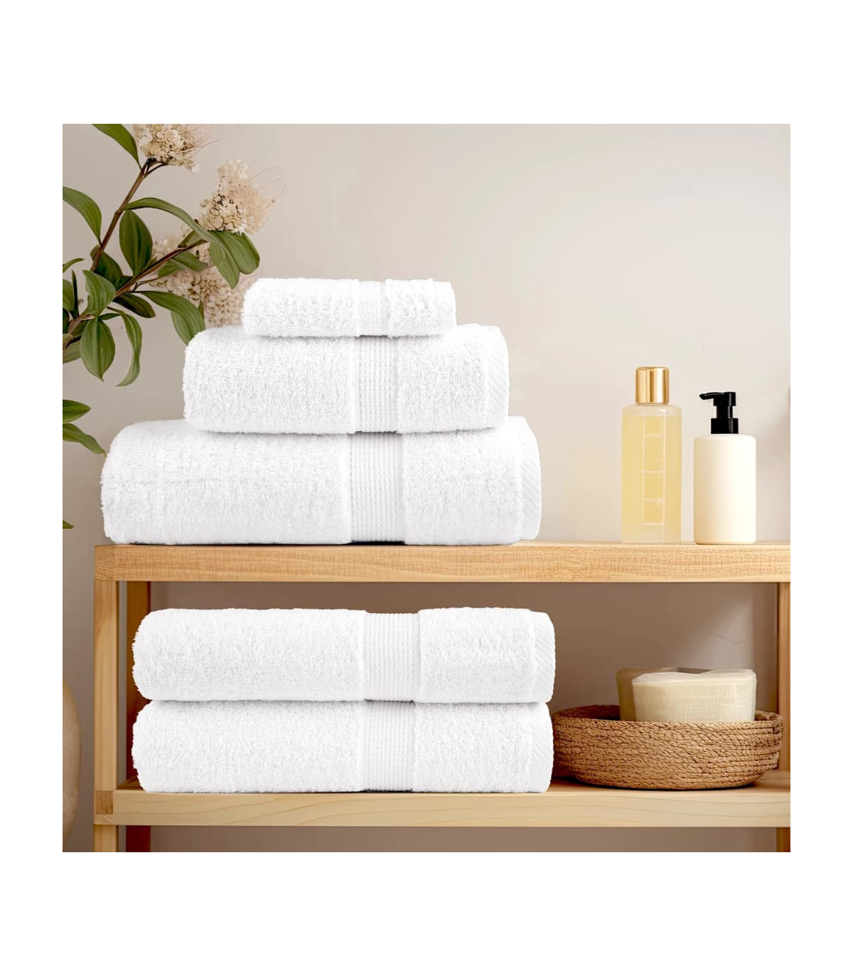 This towel set is ideal for both domestic and commercial use. Super soft and premium material: These towels are made of 100% ring-spun cotton, which is soft, durable, and fade-resistant. They are OEKO-TEX STANDARD 100 certified and tested for harmful substances, which makes them trustworthy and reliable to use.Absorbent: The soft cotton fabric makes these bath towels more absorbent and soaks up more water while cleaning.Convenient hanging loop: These towels come with an attached hanging loop for each, making it easy to store them on hooks or towel bars.Machine washable: These cotton bath towels are perfectly machine-safe and can be easily washed with warm water and light soap.Multipurpose use: This bath towel set caters to various needs with its softness and durability. These towels are versatile and reliable for beauty treatments or everyday cleaning tasks.