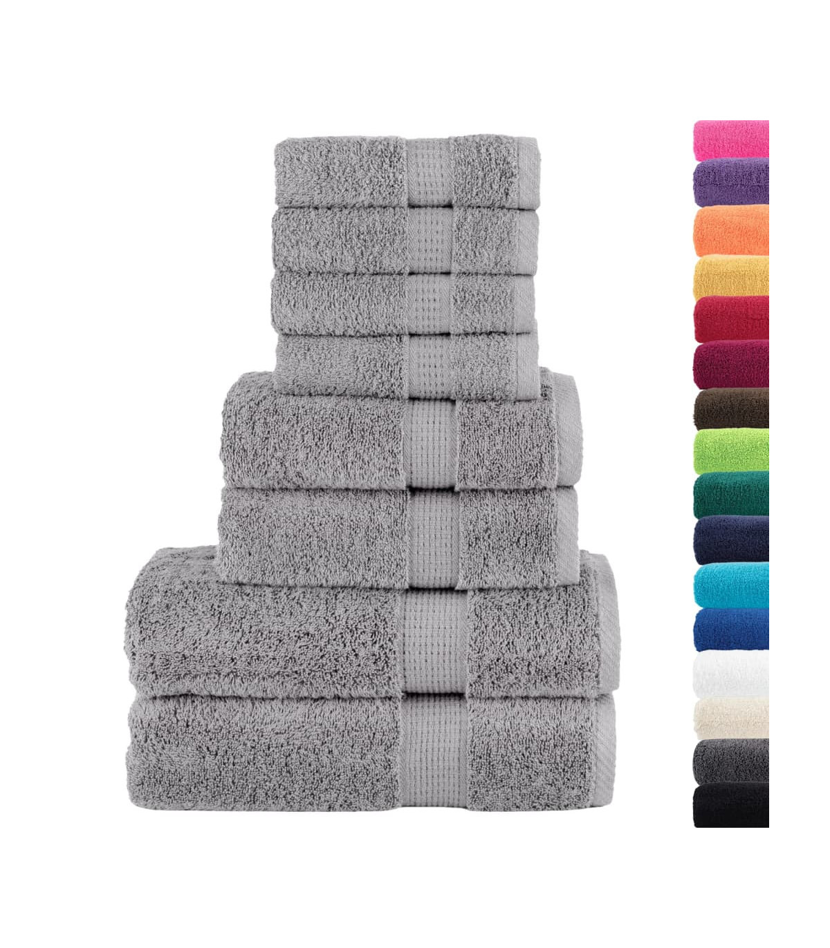 This towel set is ideal for both domestic and commercial use. Super soft and premium material: These towels are made of 100% ring-spun cotton, which is soft, durable, and fade-resistant. They are OEKO-TEX STANDARD 100 certified and tested for harmful substances, which makes them trustworthy and reliable to use.Absorbent: The soft cotton fabric makes these bath towels more absorbent and soaks up more water while cleaning.Convenient hanging loop: These towels come with an attached hanging loop for each, making it easy to store them on hooks or towel bars.Machine washable: These cotton bath towels are perfectly machine-safe and can be easily washed with warm water and light soap.Multipurpose use: This bath towel set caters to various needs with its softness and durability. These towels are versatile and reliable for beauty treatments or everyday cleaning tasks.