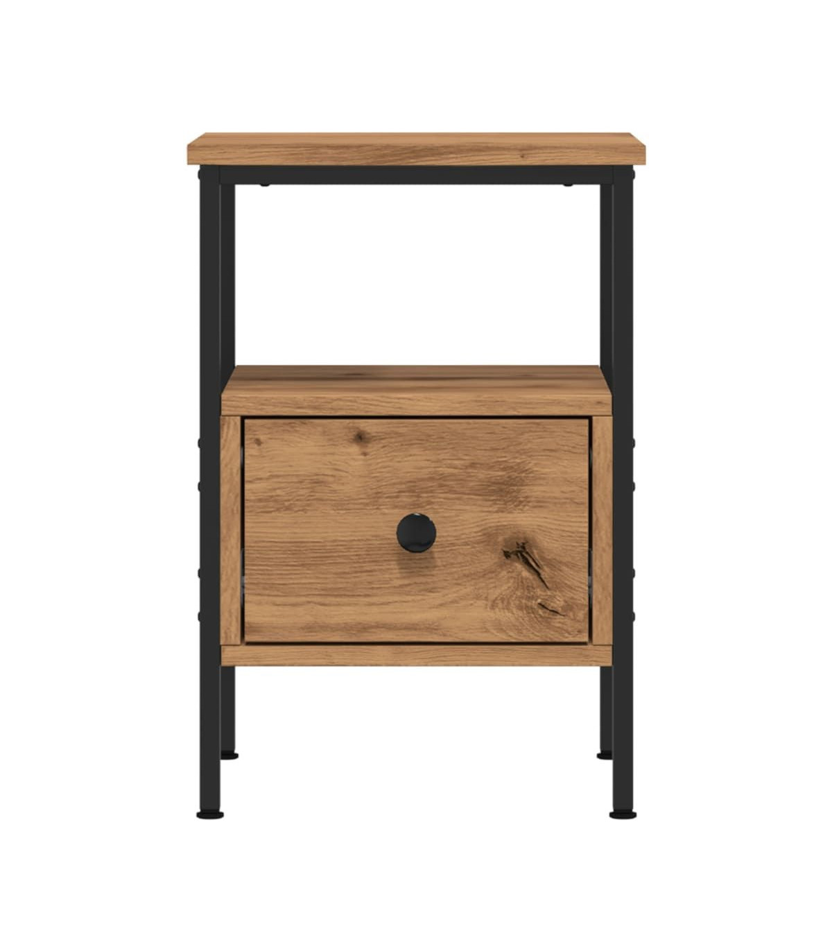 With a simple and compact design, this bedside cabinet fits easily into your bedroom or living room and adds a timeless charm to your interior. Durable material: The engineered wood is of exceptional quality with smooth surface and also features strength, stability and resistance to moisture. Sturdy frame: The iron frame ensures sturdiness and stability.Ample storage space: The bedside table offers ample storage space for keeping your various daily essentials well organised and within easy reach.Displaying function: You can also place your favourite photos, decorations, or flowers on top of the side table to enrich your life.Adjustable feet: Four adjustable feet with plastic pads keep the side cabinet balanced on uneven ground and increase stability. Warning:To prevent it being overturned, this product must be used with the provided wall attachment device.