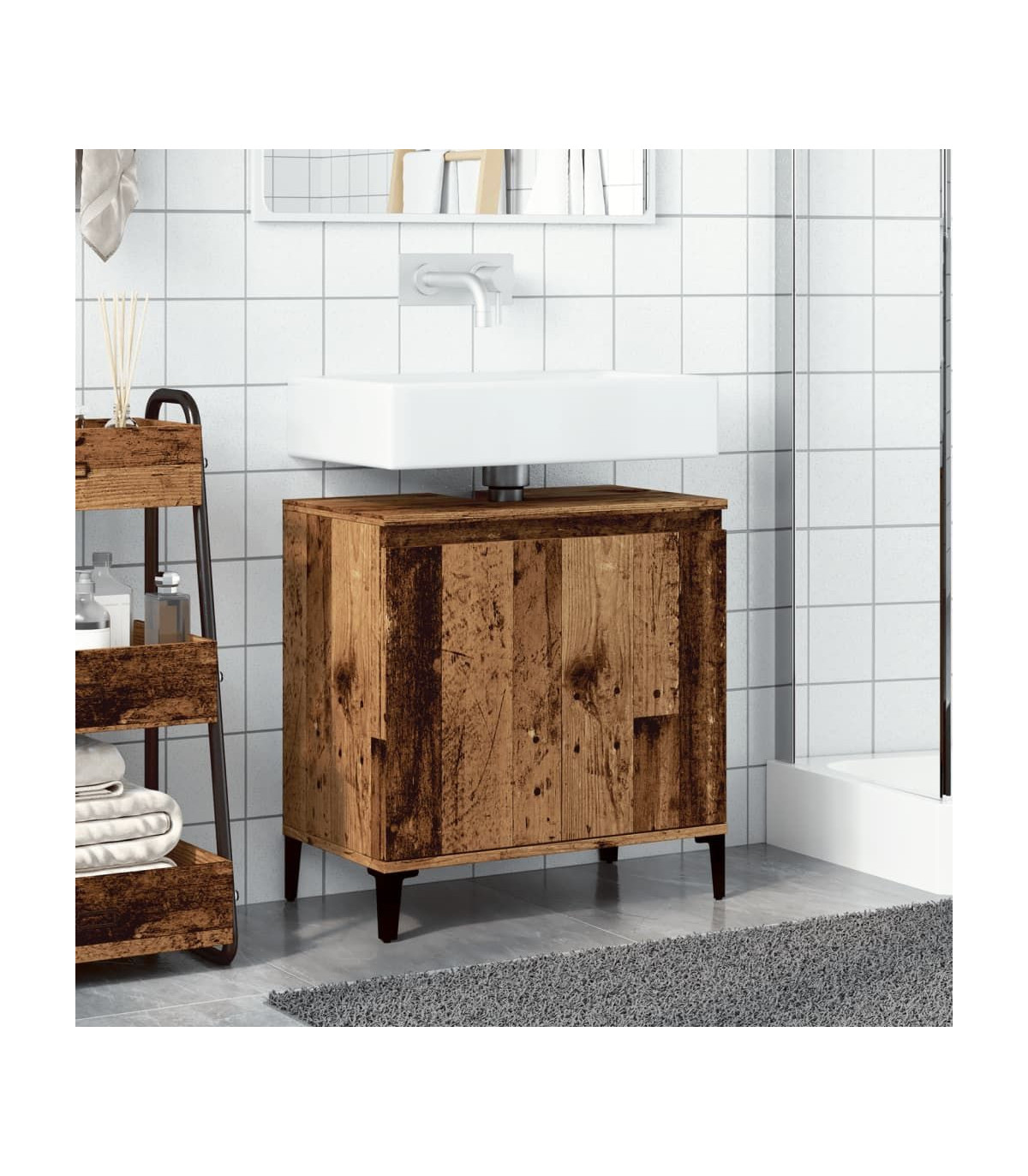 - Material: Engineered wood, metal