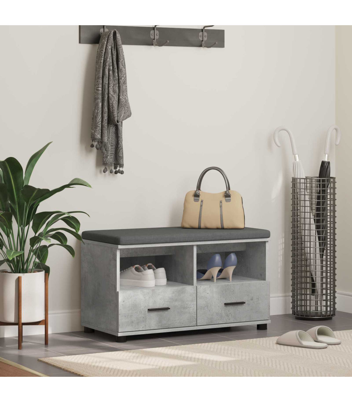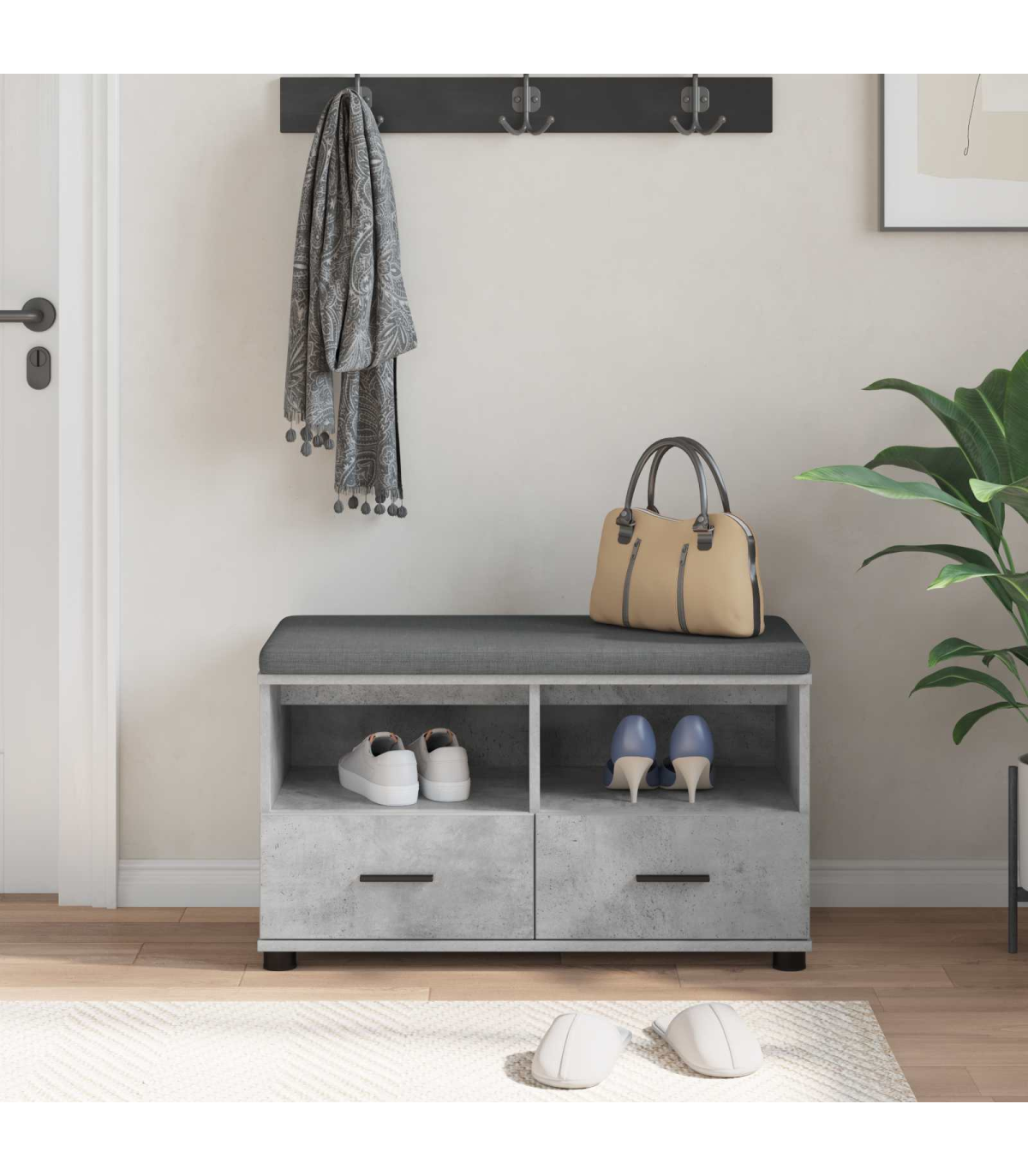 This modern hall bench, designed with simplicity in mind, brings an air of contemporary elegance to any home entryway or hallway. With a rectangular silhouette that complements a wide range of interiors, it harmonizes minimal ornamentation with functional design. Perfect for homeowners seeking style and comfort, its versatile nature suits various seasonal decor themes, creating an inviting atmosphere for guests and family alike. Elegant Appearance: The modern design of this hall bench showcases a clean rectangular shape and a soft cushion that spans multiple seats. Its stylish character enhances any entryway and complements modern, minimalist spaces. Convenient Storage: Featuring ample built-in storage, the bench is perfect for keeping your hallway tidy and organized. Use it to store shoes, bags, or other daily essentials, ensuring an uncluttered living space. Comfort &Ergonomics: The bench is equipped with a plush cushion made for comfort and relaxation. Its particleboard construction adds support, making it a reliable seating option for busy households. Adjustable &Stable: With adjustable feet, the bench remains stable on uneven surfaces, providing additional security in homes with high traffic or uneven flooring. Simple Maintenance: To keep this piece looking pristine, simply wipe it with a damp cloth. This low-maintenance bench ensures your entryway stays stylish and welcoming with minimal effort.
