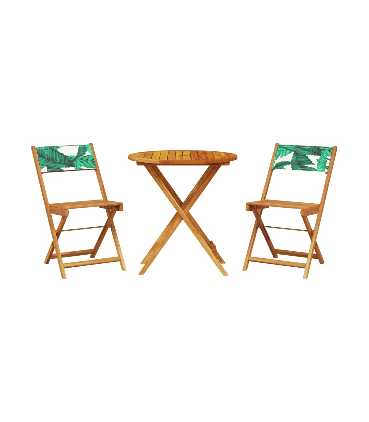 Enjoy a cup of coffee or have a chat with your family and friends in the garden, backyard, or on the balcony with this bistro set! Robust and stable: Solid acacia wood is known for its strength and durability. Its diverse colours and unique grain patterns give it an attractive appearance. With good stability and resistance to weathering, it is ideal for crafting indoor and outdoor furniture.Practical design: The outdoor chair eliminates the armrest design and only comes with a backrest, allowing you to have more freedom of movement while still enjoying a comfortable experience.Sturdy tabletop: The outdoor table offers excellent support for holding your drinks, snacks, fruit baskets, and your favourite decorations.Foldable design: The outdoor dining table and chairs can be easily folded away when not in use, for easy storage and transportation. Good to know:To make sure your outdoor furniture stays beautiful, we recommend protecting it with a waterproof cover.