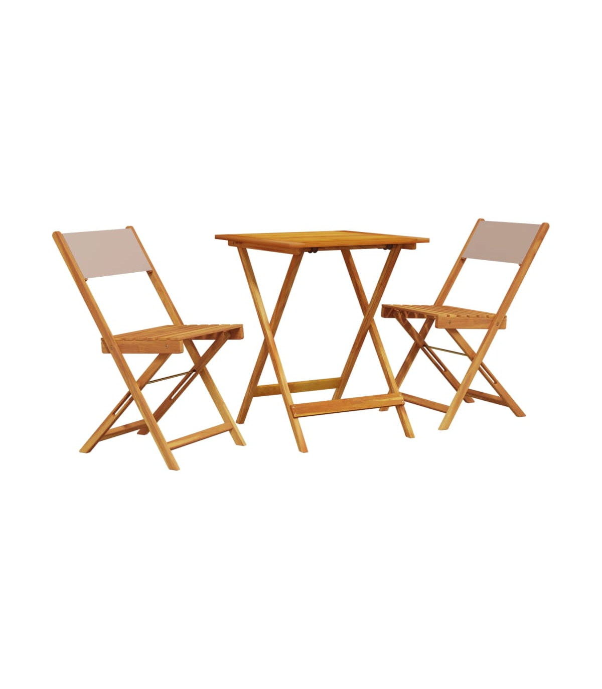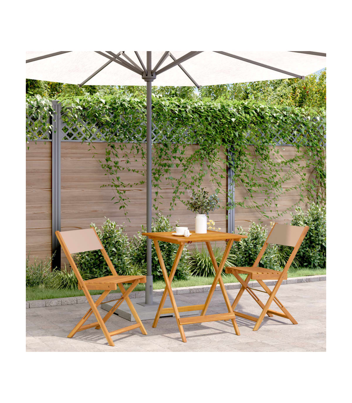 Enjoy a cup of coffee or have a chat with your family and friends in the garden, backyard, or on the balcony with this bistro set! Robust and stable: Solid acacia wood is known for its strength and durability. Its diverse colours and unique grain patterns give it an attractive appearance. With good stability and resistance to weathering, it is ideal for crafting indoor and outdoor furniture.Practical design: The outdoor chair eliminates the armrest design and only comes with a backrest, allowing you to have more freedom of movement while still enjoying a comfortable experience.Sturdy tabletop: The outdoor table offers excellent support for holding your drinks, snacks, fruit baskets, and your favourite decorations.Foldable design: The outdoor dining table and chairs can be easily folded away when not in use, for easy storage and transportation. Good to know:To make sure your outdoor furniture stays beautiful, we recommend protecting it with a waterproof cover.