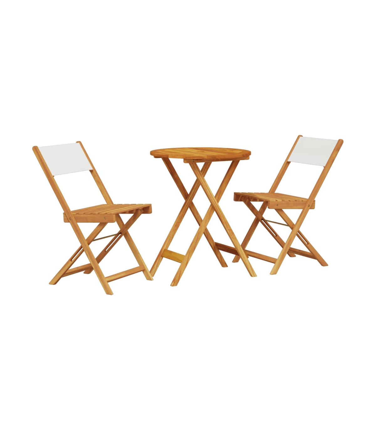 Enjoy a cup of coffee or have a chat with your family and friends in the garden, backyard, or on the balcony with this bistro set! Robust and stable: Solid acacia wood is known for its strength and durability. Its diverse colours and unique grain patterns give it an attractive appearance. With good stability and resistance to weathering, it is ideal for crafting indoor and outdoor furniture.Practical design: The outdoor chair eliminates the armrest design and only comes with a backrest, allowing you to have more freedom of movement while still enjoying a comfortable experience.Sturdy tabletop: The outdoor table offers excellent support for holding your drinks, snacks, fruit baskets, and your favourite decorations.Foldable design: The outdoor dining table and chairs can be easily folded away when not in use, for easy storage and transportation. Good to know:To make sure your outdoor furniture stays beautiful, we recommend protecting it with a waterproof cover.