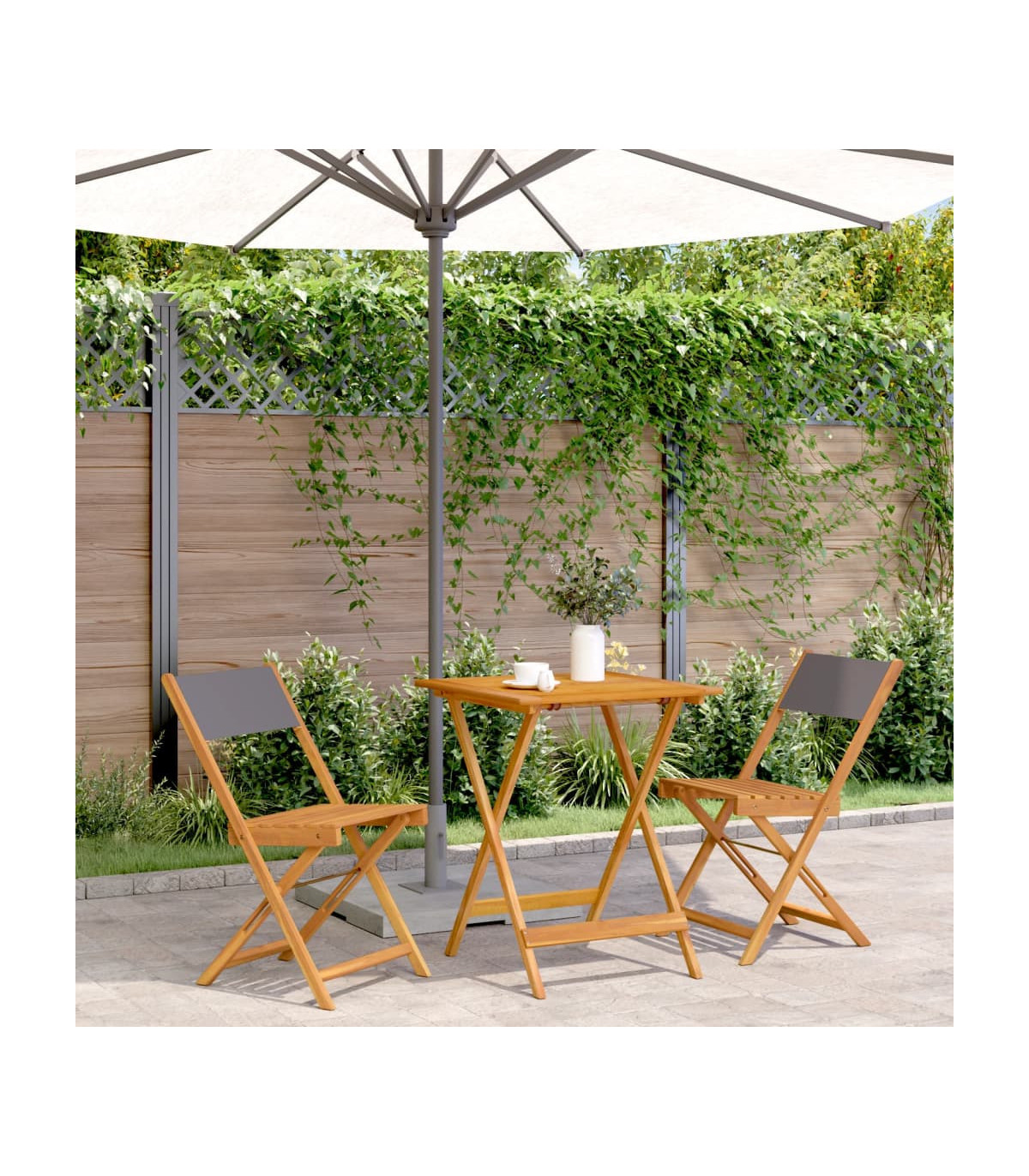 Enjoy a cup of coffee or have a chat with your family and friends in the garden, backyard, or on the balcony with this bistro set! Robust and stable: Solid acacia wood is known for its strength and durability. Its diverse colours and unique grain patterns give it an attractive appearance. With good stability and resistance to weathering, it is ideal for crafting indoor and outdoor furniture.Practical design: The outdoor chair eliminates the armrest design and only comes with a backrest, allowing you to have more freedom of movement while still enjoying a comfortable experience.Sturdy tabletop: The outdoor table offers excellent support for holding your drinks, snacks, fruit baskets, and your favourite decorations.Foldable design: The outdoor dining table and chairs can be easily folded away when not in use, for easy storage and transportation. Good to know:To make sure your outdoor furniture stays beautiful, we recommend protecting it with a waterproof cover.