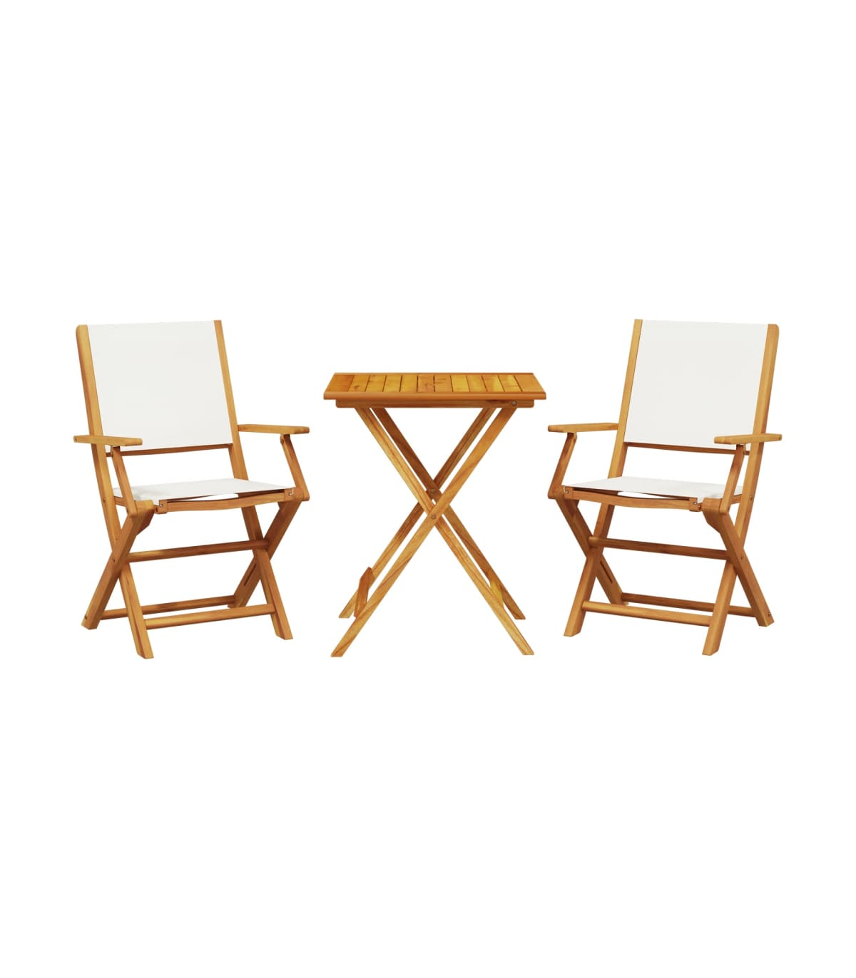 Enjoy a cup of coffee or have a chat with your family and friends in the garden, backyard, or on the balcony with this bistro set! Robust and stable: Solid acacia wood is known for its strength and durability. Its diverse colours and unique grain patterns give it an attractive appearance. With good stability and resistance to weathering, it is ideal for crafting indoor and outdoor furniture.Practical design: The practical and flat wooden handrail allows you to rest your hands on it while enjoying your outdoor time.Sturdy tabletop: The outdoor table offers excellent support for holding your drinks, snacks, fruit baskets, and your favourite decorations.Foldable design: The outdoor dining table and chairs can be easily folded away when not in use, for easy storage and transportation. Good to know:To make sure your outdoor furniture stays beautiful, we recommend protecting it with a waterproof cover.
