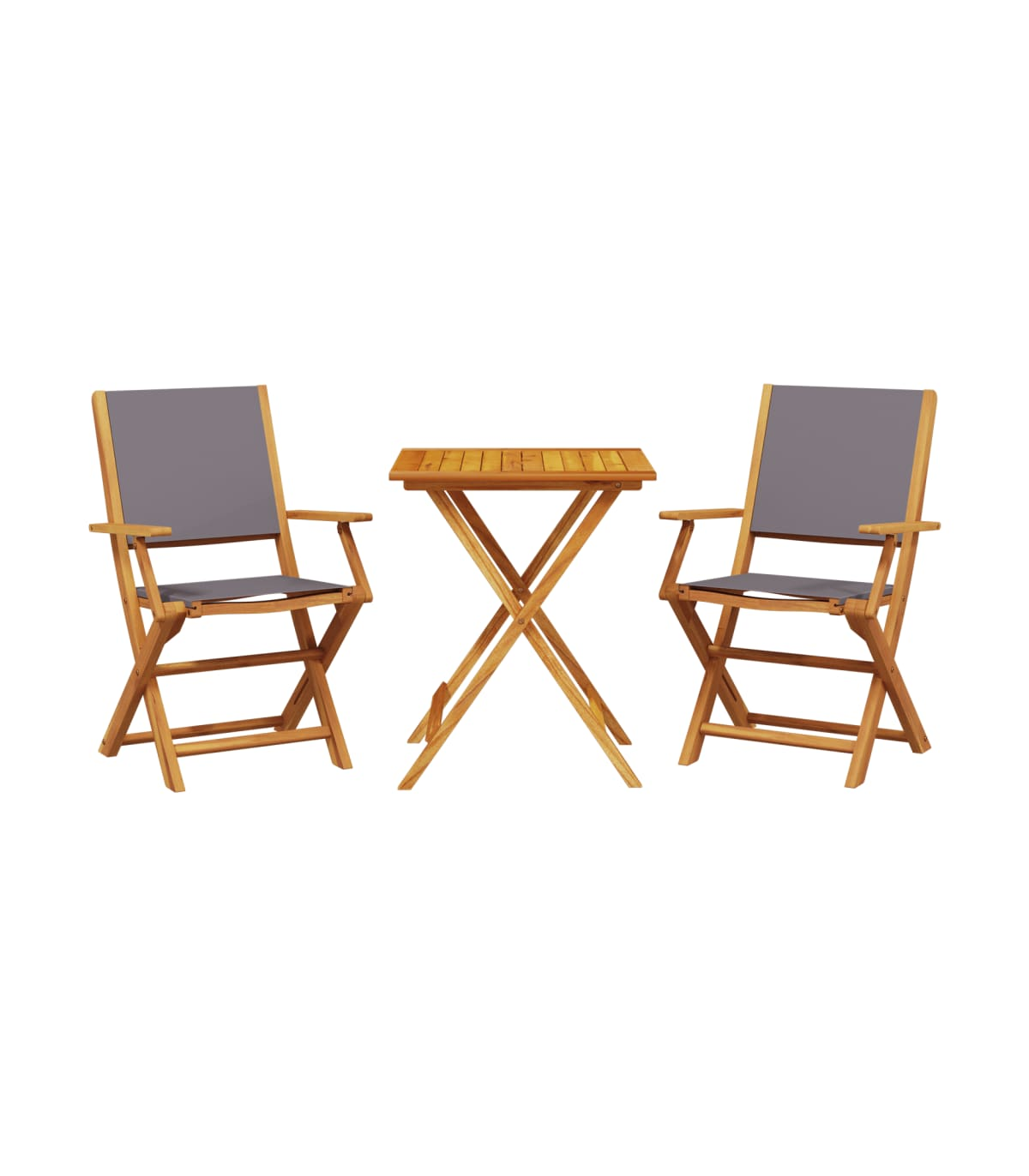 Enjoy a cup of coffee or have a chat with your family and friends in the garden, backyard, or on the balcony with this bistro set! Robust and stable: Solid acacia wood is known for its strength and durability. Its diverse colours and unique grain patterns give it an attractive appearance. With good stability and resistance to weathering, it is ideal for crafting indoor and outdoor furniture.Practical design: The practical and flat wooden handrail allows you to rest your hands on it while enjoying your outdoor time.Sturdy tabletop: The outdoor table offers excellent support for holding your drinks, snacks, fruit baskets, and your favourite decorations.Foldable design: The outdoor dining table and chairs can be easily folded away when not in use, for easy storage and transportation. Good to know:To make sure your outdoor furniture stays beautiful, we recommend protecting it with a waterproof cover.
