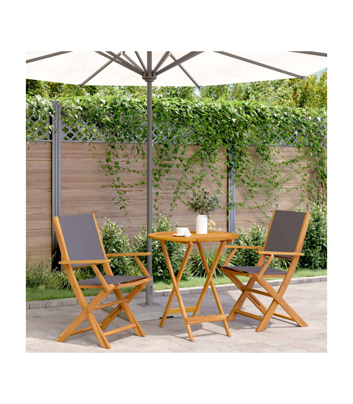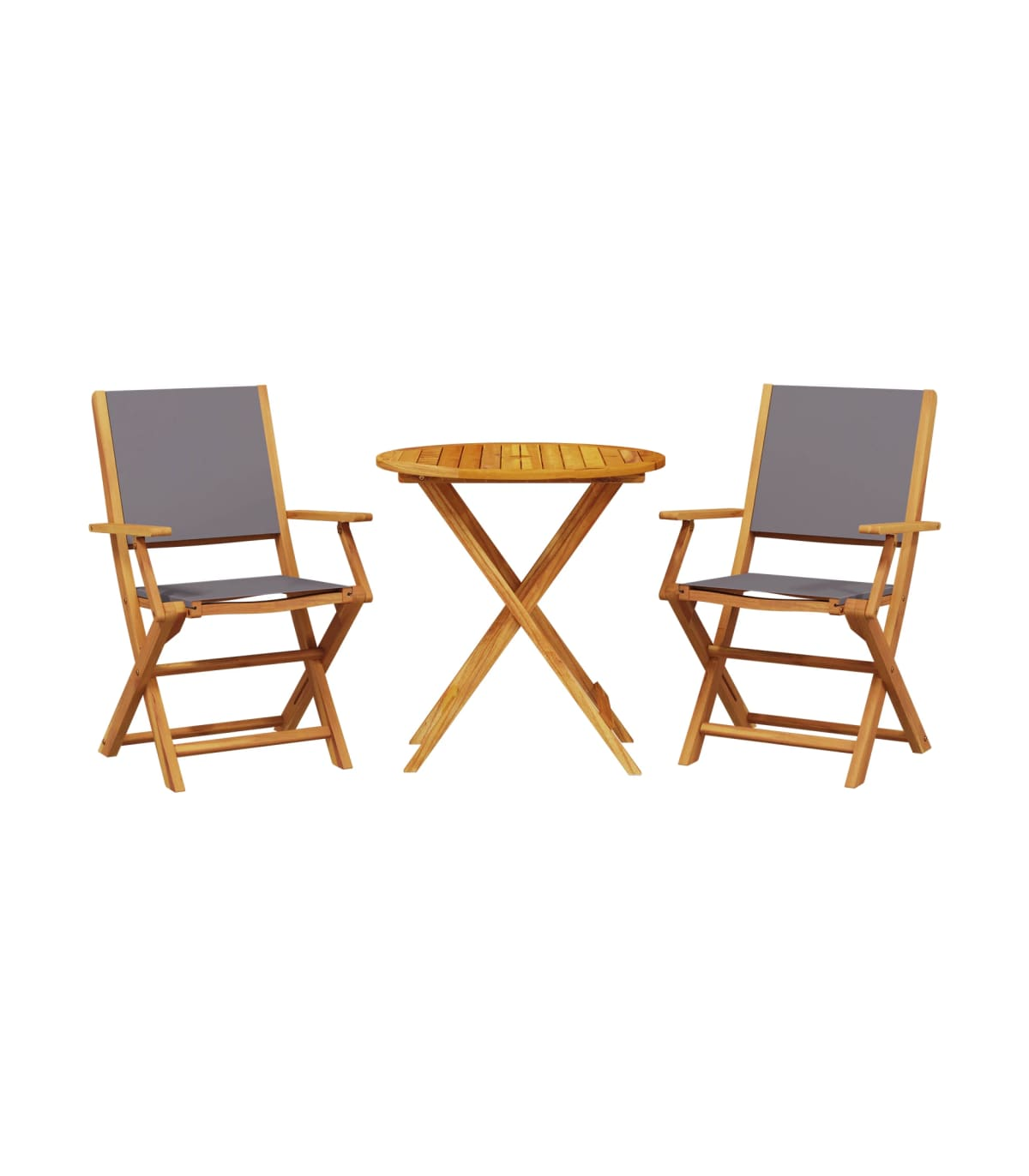 Enjoy a cup of coffee or have a chat with your family and friends in the garden, backyard, or on the balcony with this bistro set! Robust and stable: Solid acacia wood is known for its strength and durability. Its diverse colours and unique grain patterns give it an attractive appearance. With good stability and resistance to weathering, it is ideal for crafting indoor and outdoor furniture.Practical design: The practical and flat wooden handrail allows you to rest your hands on it while enjoying your outdoor time.Sturdy tabletop: The outdoor table offers excellent support for holding your drinks, snacks, fruit baskets, and your favourite decorations.Foldable design: The outdoor dining table and chairs can be easily folded away when not in use, for easy storage and transportation. Good to know:To make sure your outdoor furniture stays beautiful, we recommend protecting it with a waterproof cover.