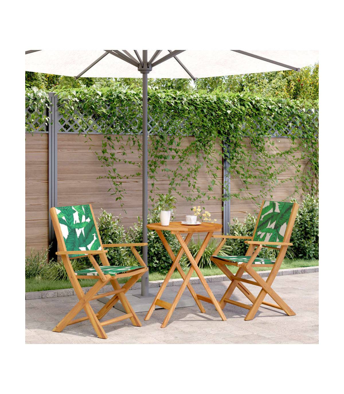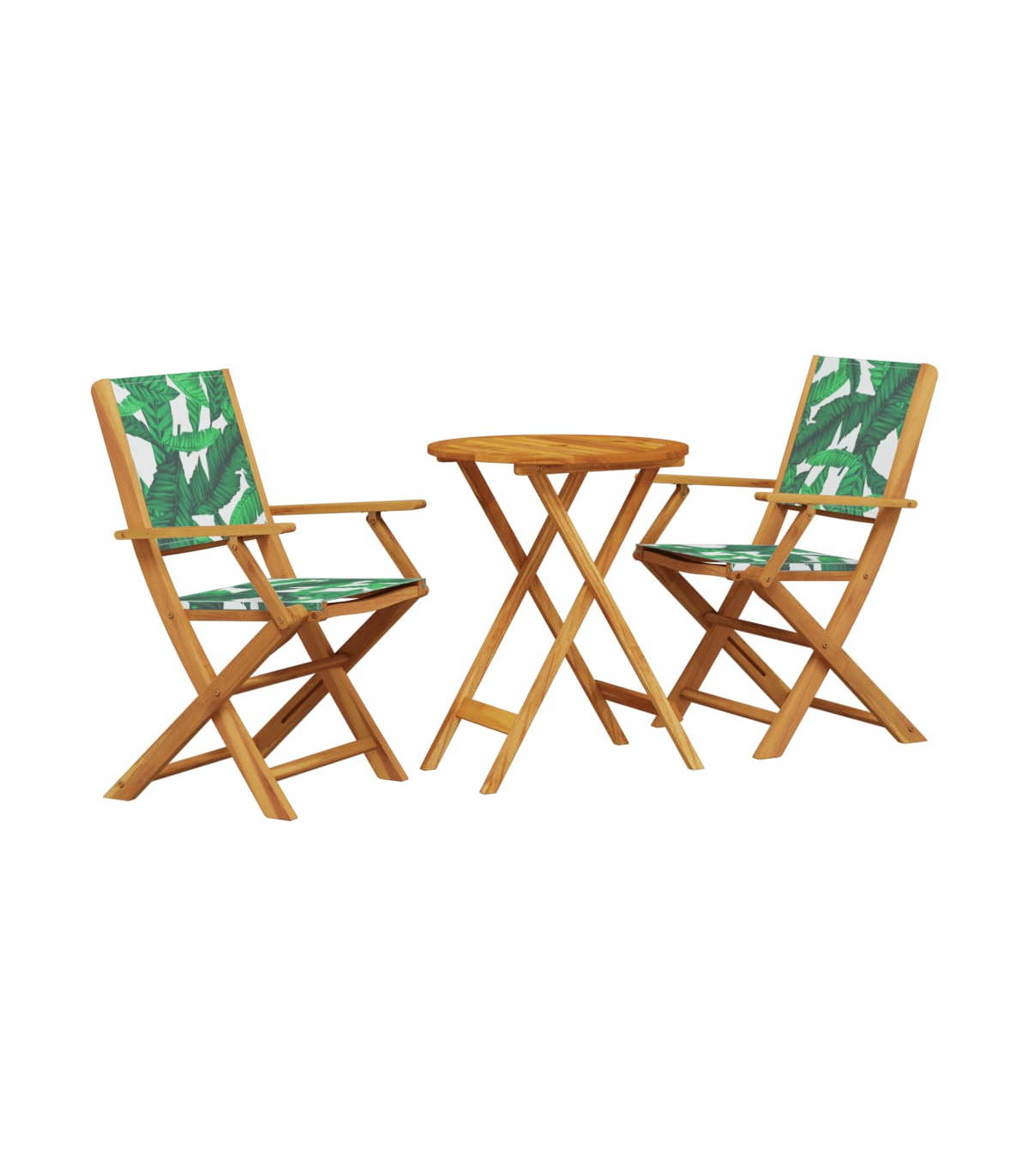 vidaXL 3 Piece Bistro Set Leaf Pattern Fabric and Solid Wood