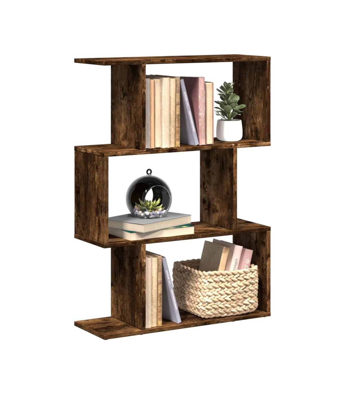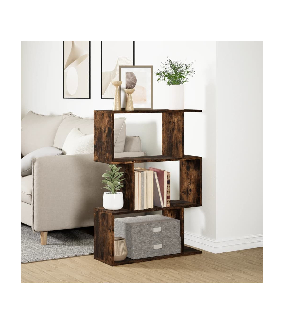 The room divider bookcase blends a geometric shape design with storage, perfect for organizing your space with style! Stable and durable material: Engineered wood is a durable and stable material with a smooth surface that is resistant to moisture, warping, and splitting, making it a reliable choice for various projects.Ample storage: The bookshelf features staggered storage compartments, offering ample space for your books or decorations. You can also choose to display smaller items on the edge platforms, making optimal use of space while keeping your belongings neatly organised.Flexible placement options: The storage shelf can be positioned with either its width or height on the ground, offering different room layout options.Versatile applications: The bookshelf can also be used as a room divider, easily fitting into any style of room. You can place it in the living room to display decoration, in the study to store books and documents, in the bedroom to store everyday items, and in the basement to store bits and bobs.Easy maintenance: Thanks to its smooth surface, the storage bookshelf is easy to clean with a damp cloth and requires less maintenance. Warning:To prevent it from tipping over, this product must be used with the provided wall attachment device. Good to know:Screws and plugs for inside the wall are not included. We advise to find and use screws and plugs suitable specifically for your walls. If you're not sure, you can consult with a professional. Please read and follow each step of the instructions.