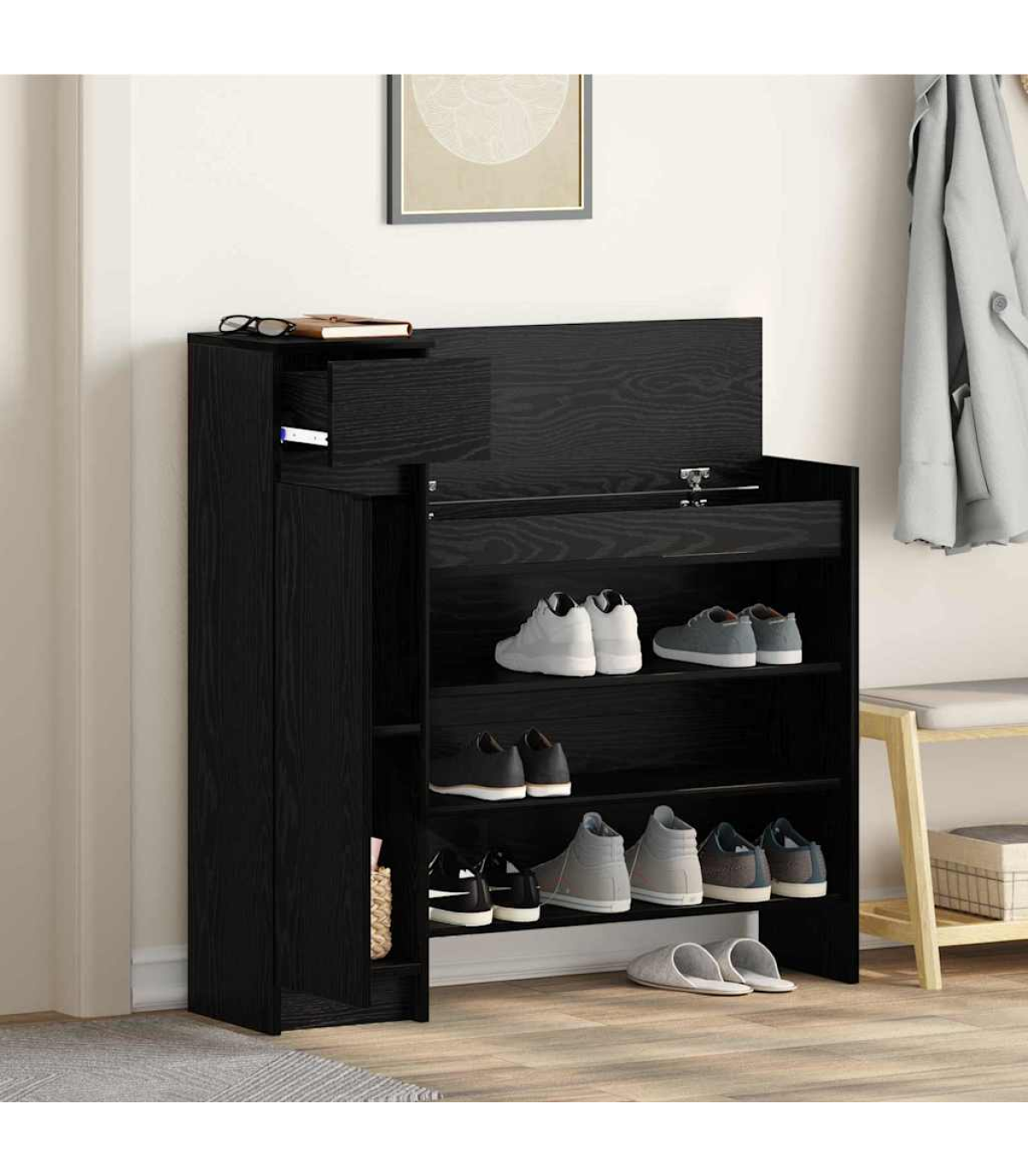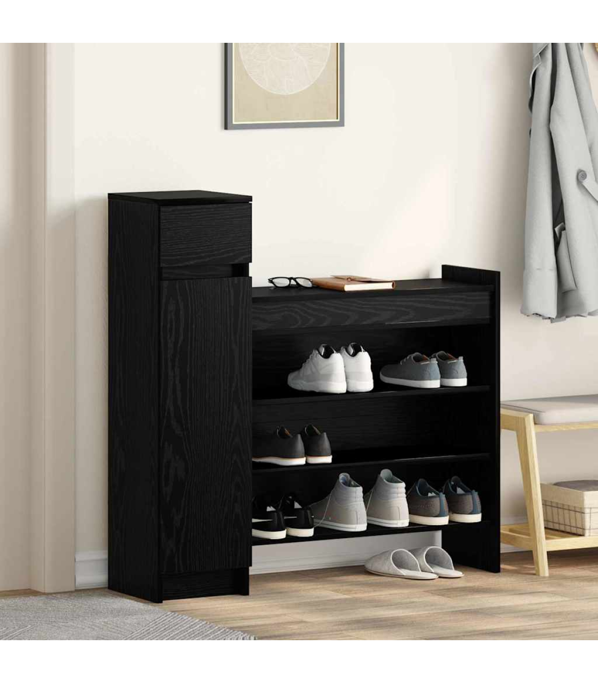 vidaXL Shoe Cabinet Black oak 100.5 x 28 x 100 cm Engineered Wood