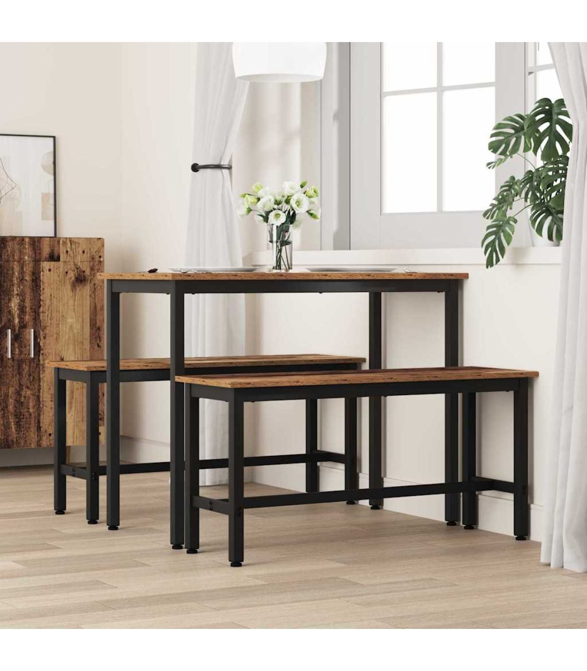 This Engineered Wood Dining Bench combines contemporary design with versatile functionality, offering both style and substance to your living space. Without a backrest, it maintains a modern, minimalistic appeal with clean lines and a sleek frame, making it suitable for dining rooms, living rooms, and bedrooms. Lend a smooth touch to your space with its elegant surface, perfect for accentuating modern interiors. Robust Materials: The bench is crafted from quality engineered wood, ensuring a reliable sitting experience over time. The steel materials incorporated into its design provide additional strength and sturdiness, guaranteeing longevity in use. Its modern aesthetics make it an appealing choice for various interiors. Essential Components: Featuring durable steel post legs for unwavering stability, this bench seamlessly supports everyday usage. The engineered wood surface grants a smooth texture for a comfortable seating experience. With every component designed meticulously, its construction invokes confidence in its purpose. Functional Design: Height-adjustable, this bench adapts to your needs, making it perfect for different seating arrangements. Its multifunctional nature allows it to transform settings from dining to casual gatherings effortlessly, providing flexibility in home styling and event hosting. Versatile Application: Fitting seamlessly into dining areas, bedrooms, or living rooms, this bench offers a versatile seating solution. Whether serving guests at the dining table or enhancing bedroom decor, it efficiently meets various needs, adding charm and utility. Maintenance &Care: Easy to maintain, the bench simply requires wiping with a damp cloth to remove dust. Avoid using harsh chemicals or abrasives which could damage the surface. Keep away from direct sunlight to preserve its appearance. These simple steps ensure your bench remains in excellent condition.