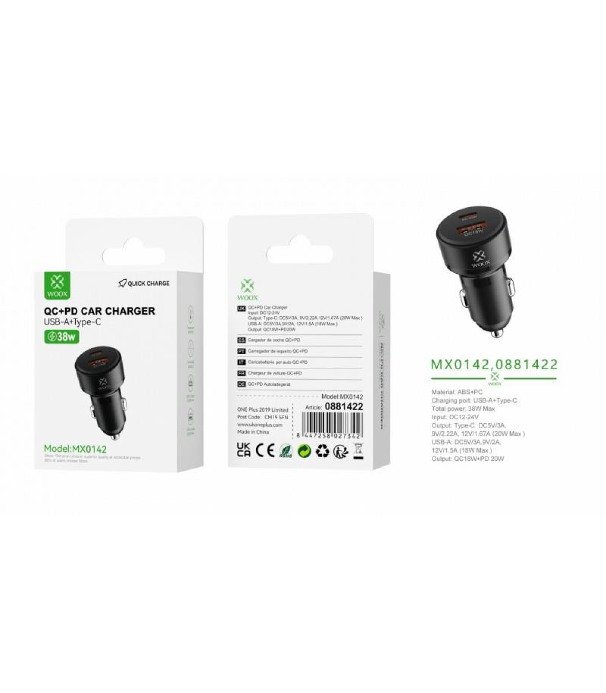 - Ports: 1 x USB-A (QC) and 1 x USB-C (PD)