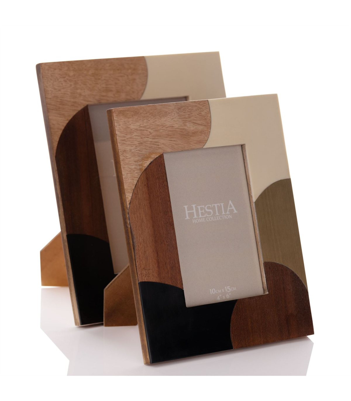 A resin, mango wood and brass photo frame from the Happy Place collection by HESTIA� This stylishly unique photo frame combines natural colours with a mix of materials - resin, mango wood and brass inlay - to bring an art deco feel to the home. The frame can be displayed freestanding for both portrait and landscape photographs, making a perfect housewarming gift or stylish addition to your own home.
