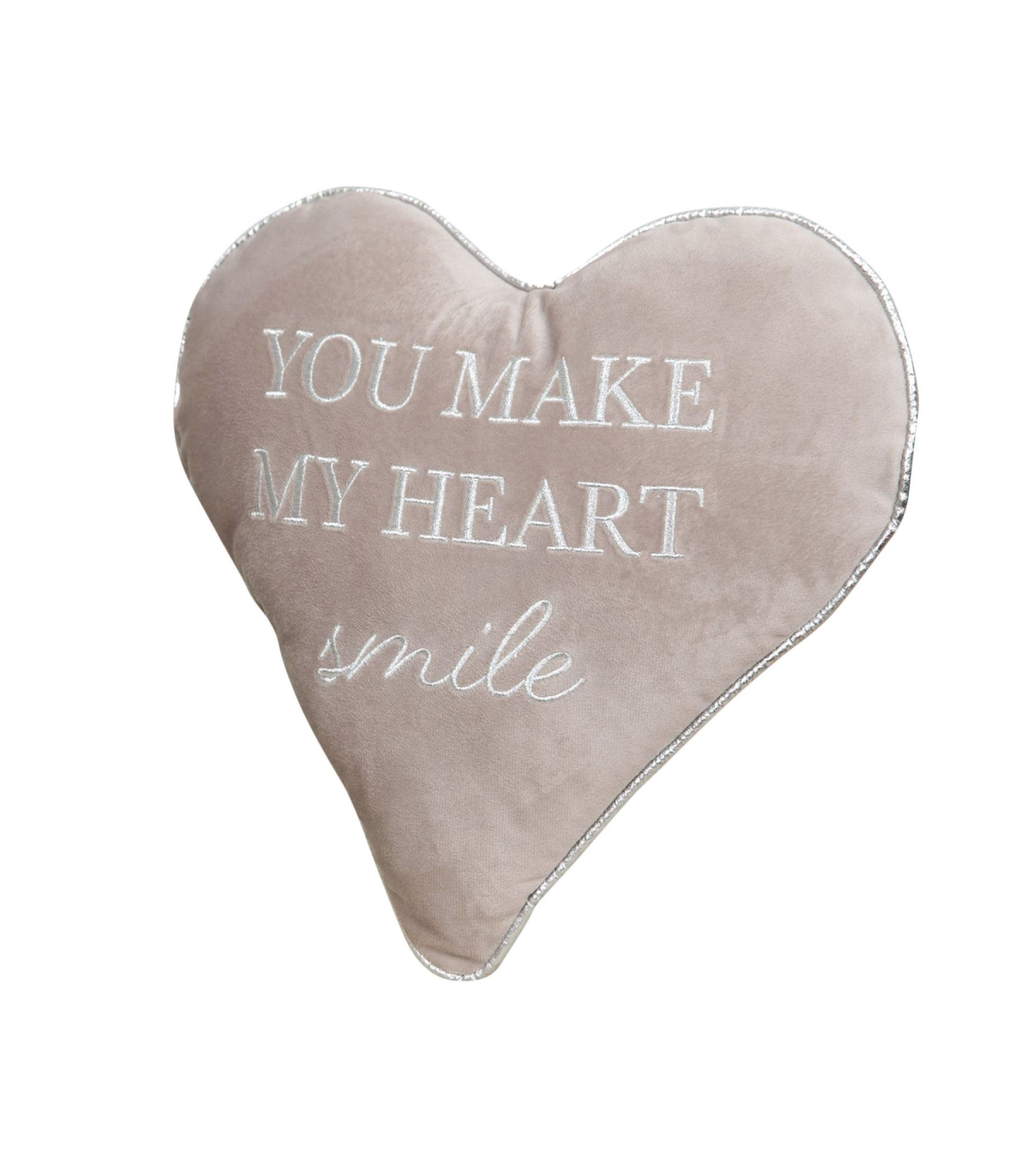 Amore Heart Shaped Cushion "You Make My Heart Smile"