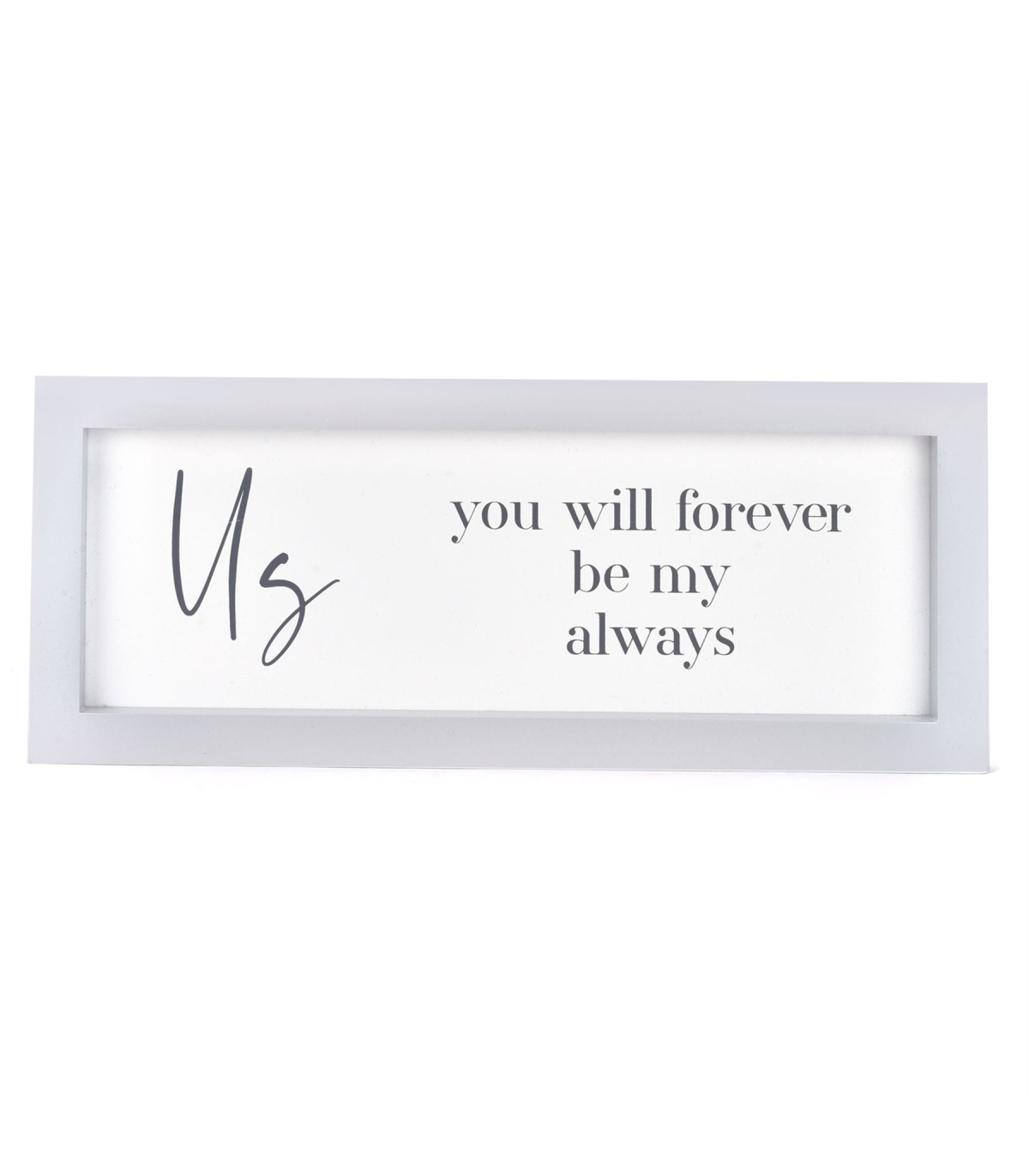 With a simple grey and white design and a heartwarming sentiment, this wall plaque makes an unrivalled gift for that special someone. This romantic accessory is perfect for a minimalist home. Details: - 40cm wide - MDF plaque - White and grey design - Hanging hook - Titled