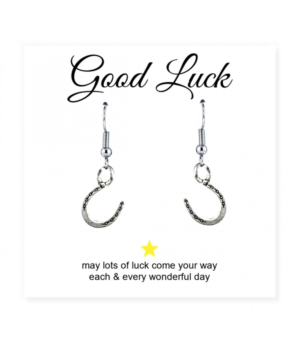 Silver 11.5mm Horseshoe Charm Earrings with Good Luck Message Card