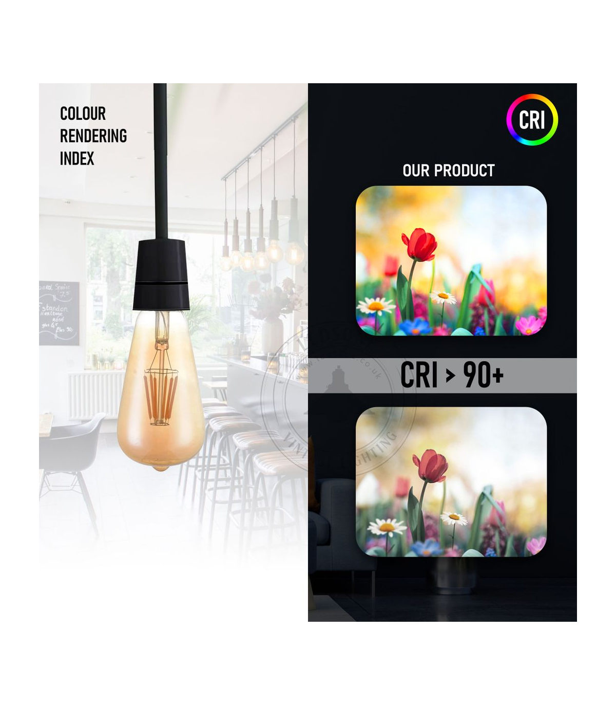 • This decorative LED light bulb fits well with lamps such as pendant lights, ceiling lights, wall lights, and industrial lamps.