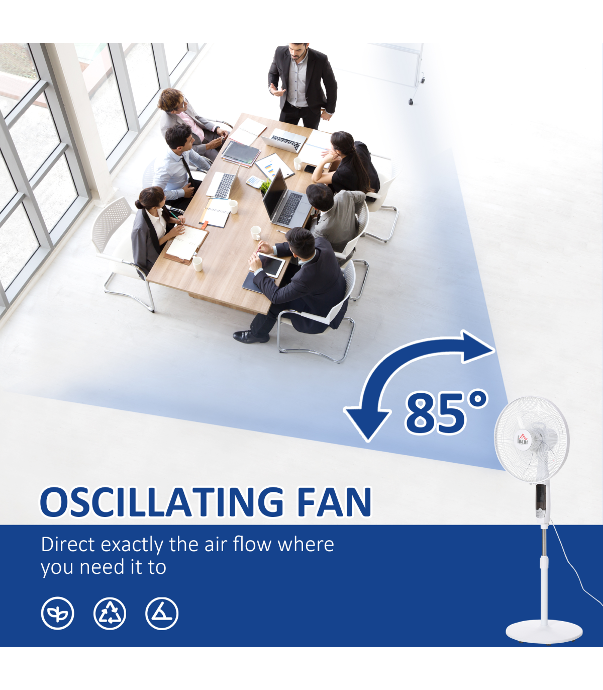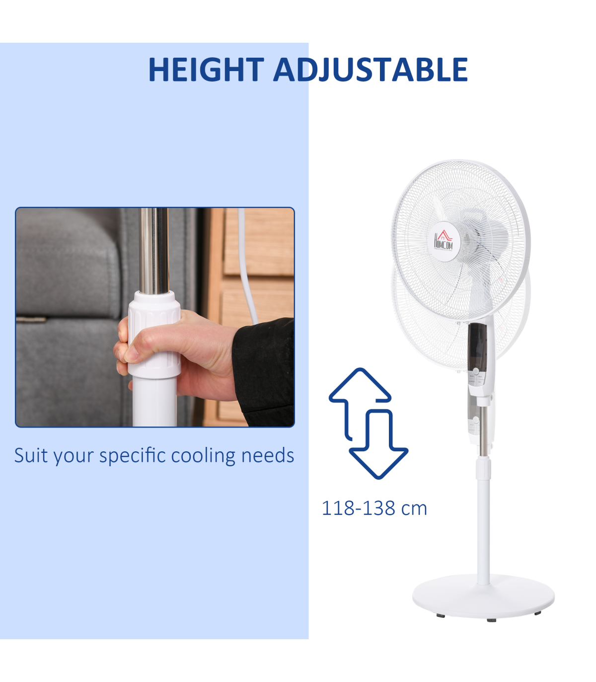 - OSCILLATING & ADJUSTABLE HEIGHT: 85° oscillation allows you to direct the airflow in the desired direction. The 20cm adjustable height range is perfect for reaching higher and lower levels.