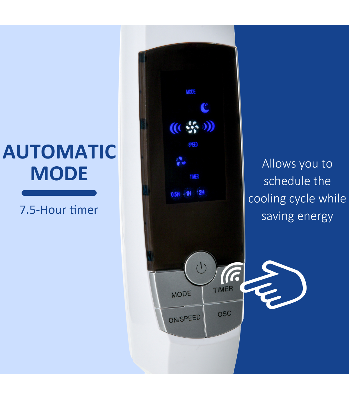 - 7.5 HOUR TIMER: Schedule the cooling cycle and save energy with the automatic shut-off feature. Ideal for nighttime use while sleeping.