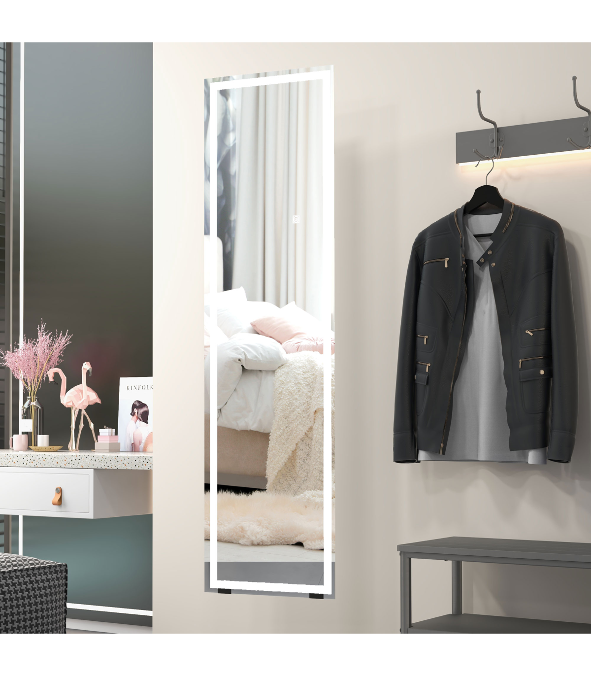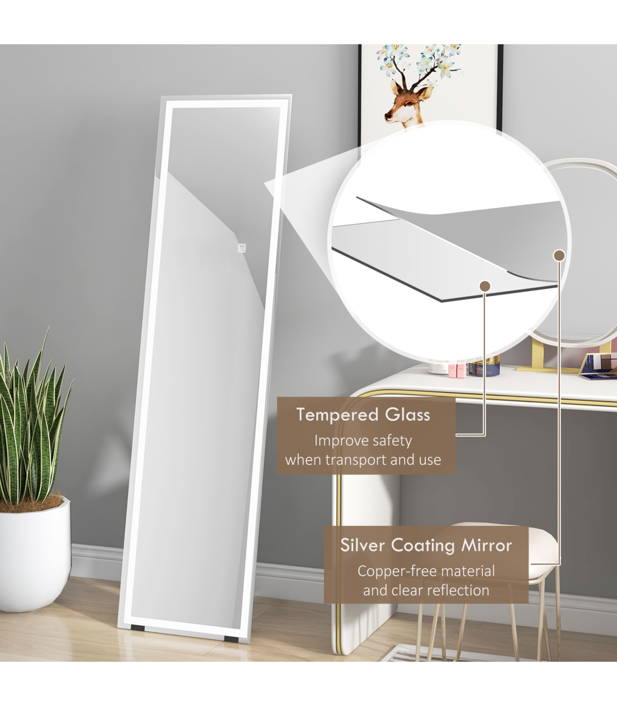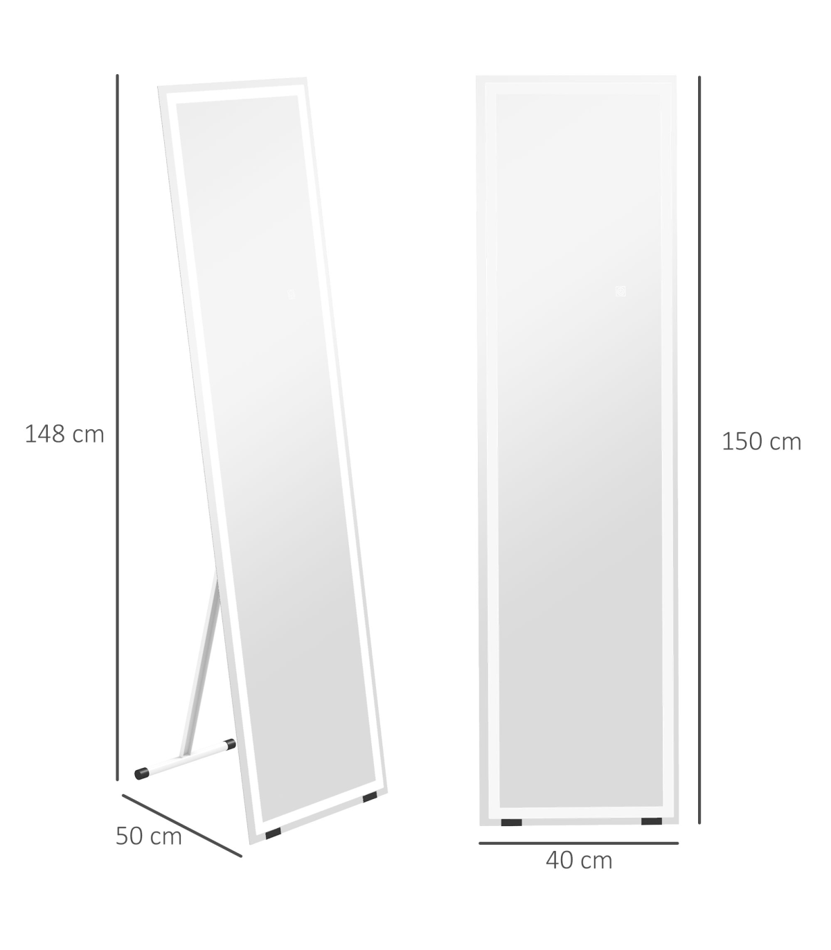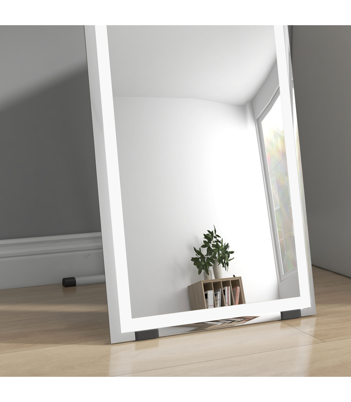 A classic homeware piece, the HOMCOM LED Lighted Full Length Mirror is a versatile addition to any bedroom. Featuring two long light strips on each side, this mirror illuminates beautifully, providing the perfect lighting day and night. The light can be adjusted to switch between warm white, natural, and positive white colors, with adjustable brightness levels controlled by a touch sensor. The mirror also includes a convenient memory function that saves your settings for next time. It can be used freestanding with the back leg, mounted on the wall using the included bracket and fixing accessories, or set up as a leaner mirror.
