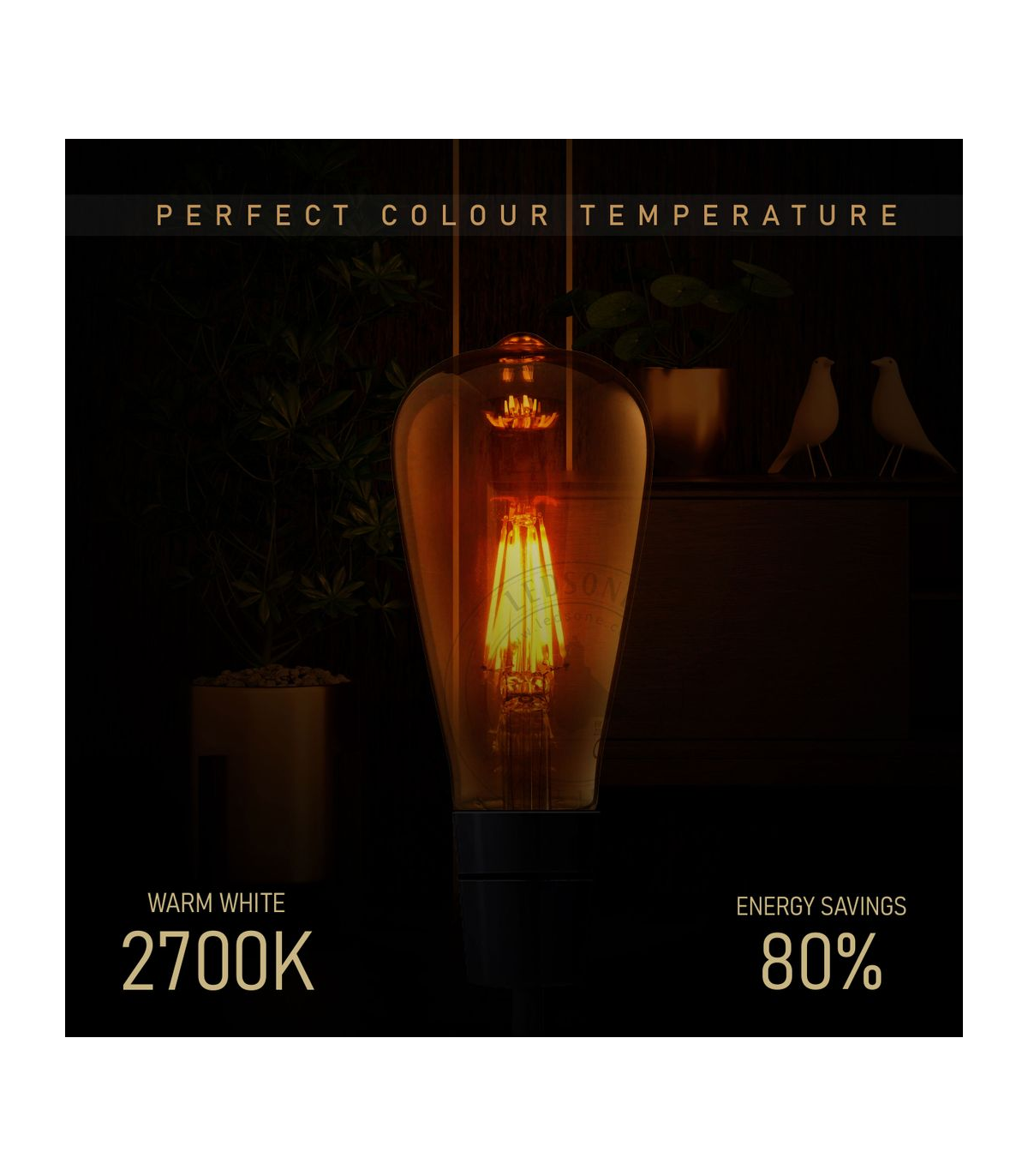 Create a relaxing ambiance with a warm white energy-saving LED filament bulb.