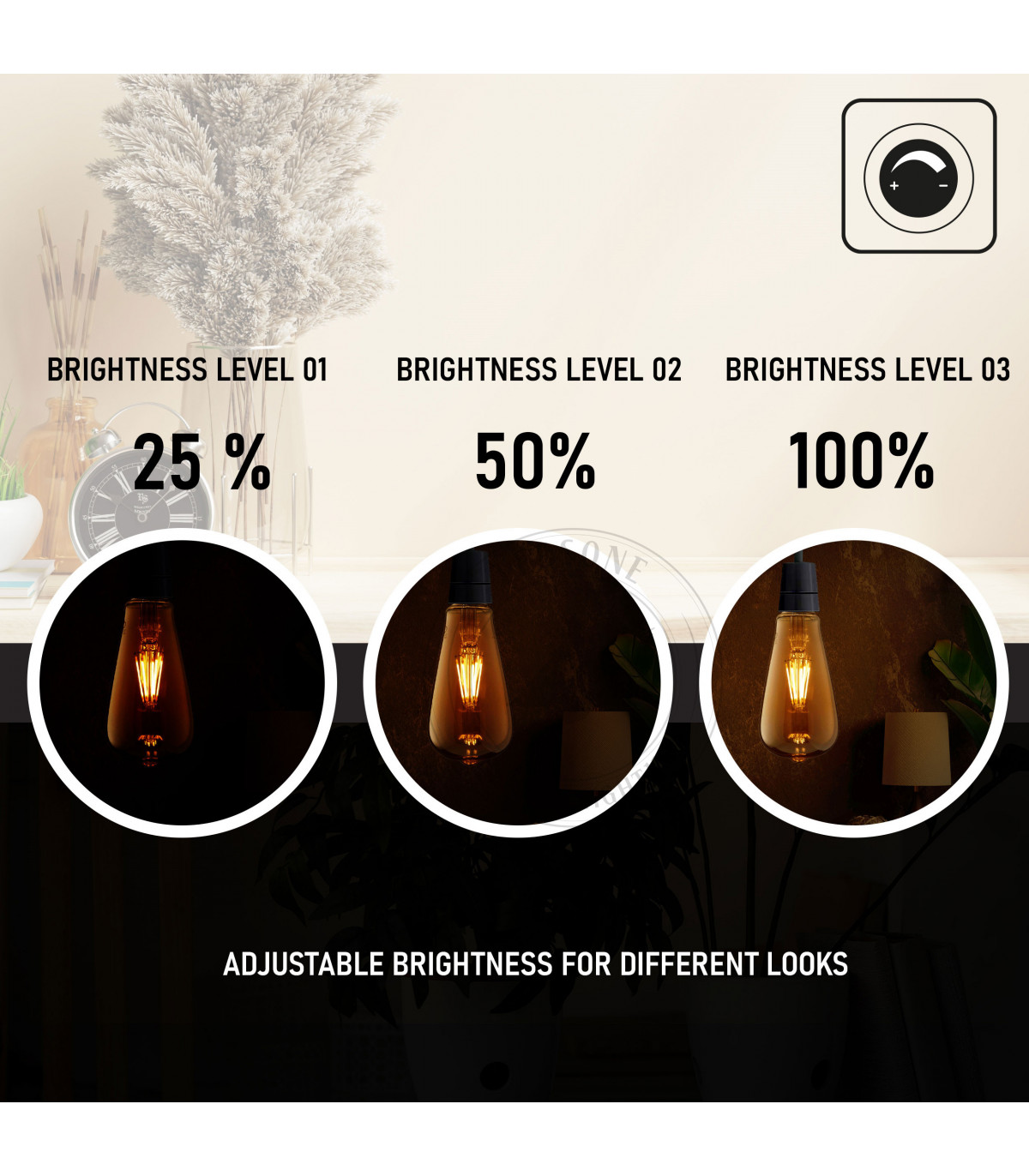 This decorative LED light bulb fits well with lamps such as pendant lights, ceiling lights, wall lights, and industrial lamps.