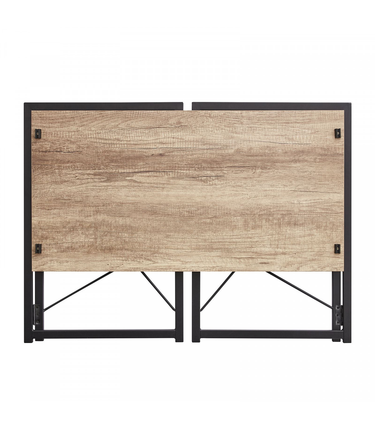 This brown multifunction folding desk is the perfect solution for smaller spaces or rooms with multiple uses. The industrial style adds a touch of modern flair to any home or office. When not in use, simply unclip the legs and fold the top flat for easy storage.