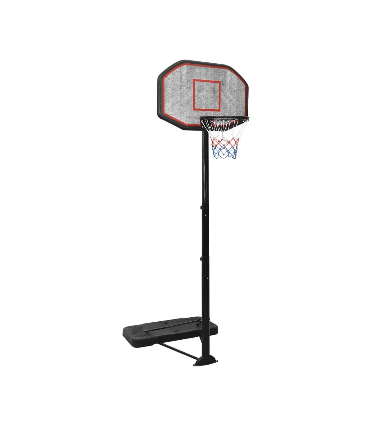 Do you want to enjoy a game of basketball with your friends anywhere, anytime? Then this adjustable basketball stand is a perfect choice! The basketball stand is made of polyethene, a durable material that is UV-resistant, lightweight, and easy to maintain. The classic steel basketball rim with an all-weather nylon net ensures the stand lasts long.