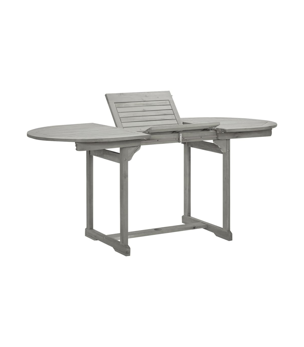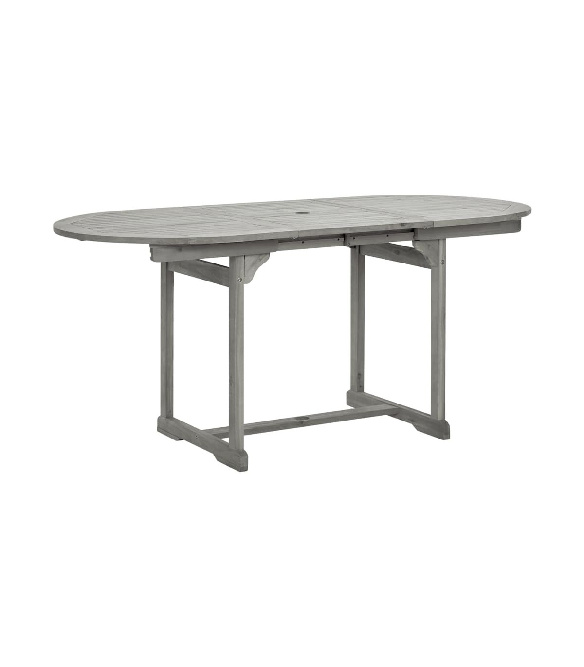 This grey solid acacia wood garden dining table is the perfect addition to your outdoor space. Made from solid acacia wood, a tropical hardwood known for its durability and weather resistance, this table is built to last. The special design allows for extension when needed, providing extra space for guests or outdoor gatherings.