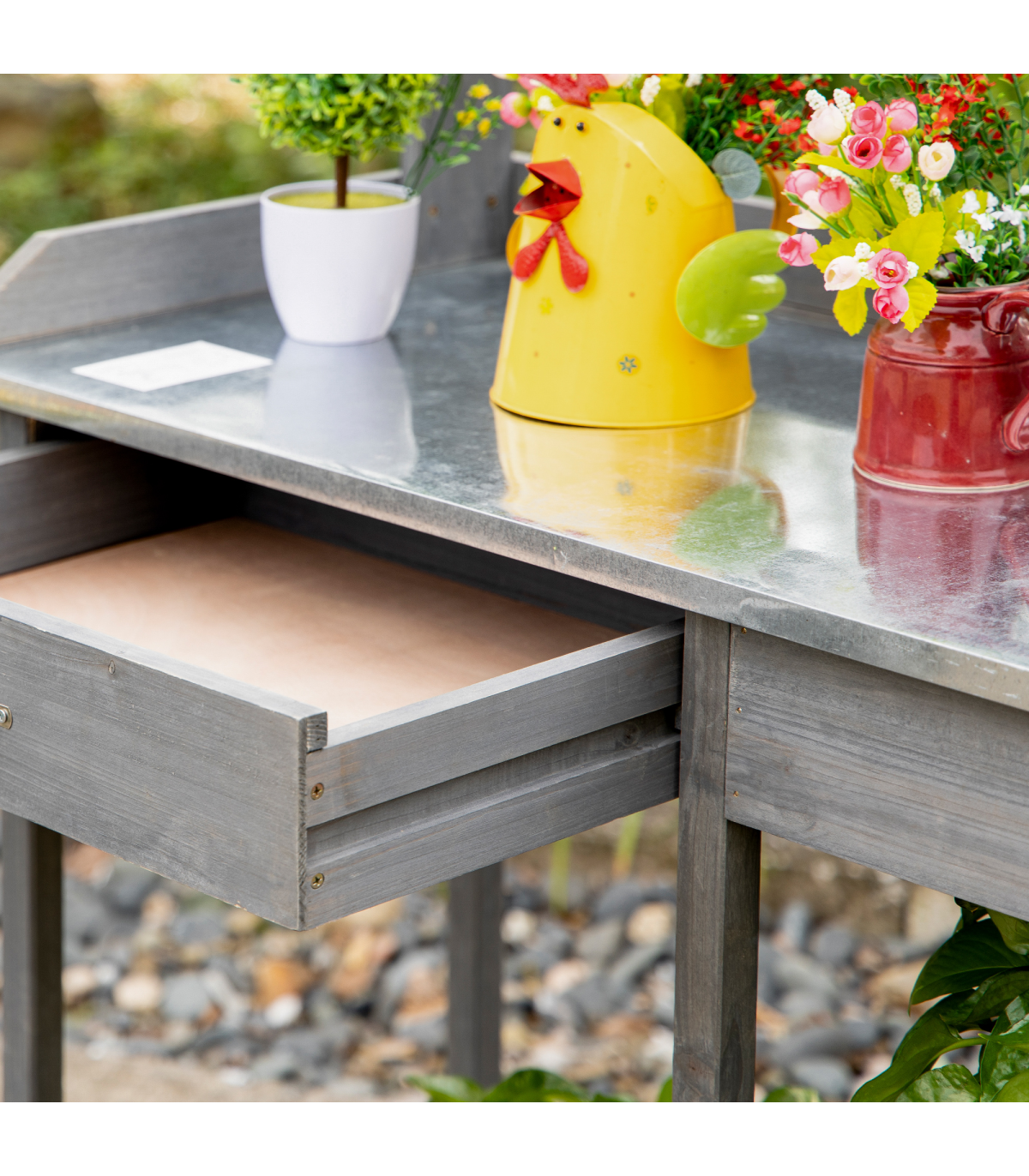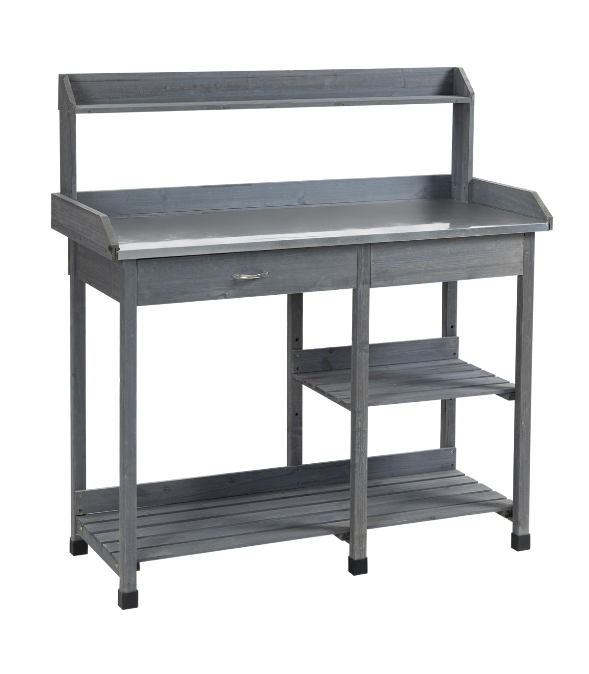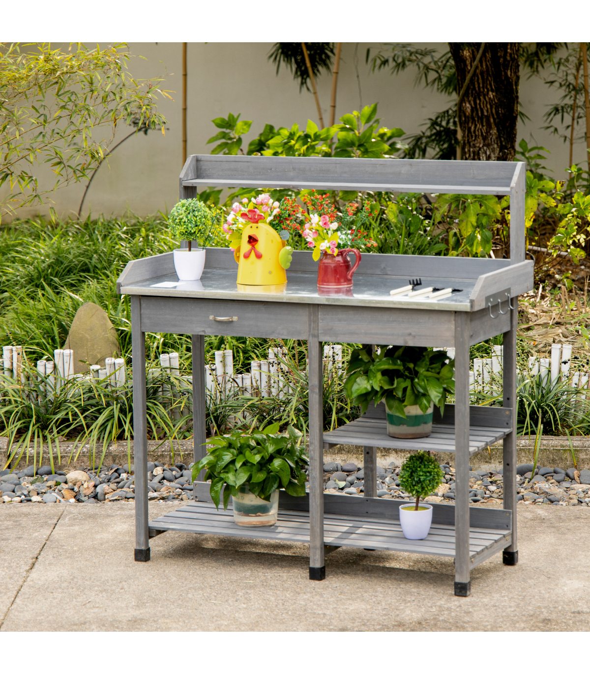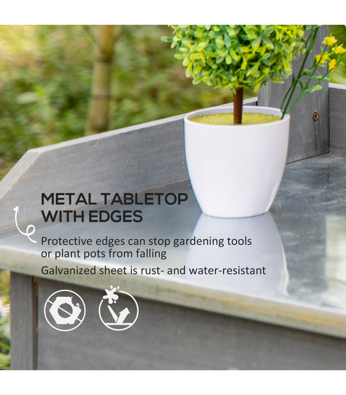 Grey Garden Potting Bench with Galvanized Metal Top