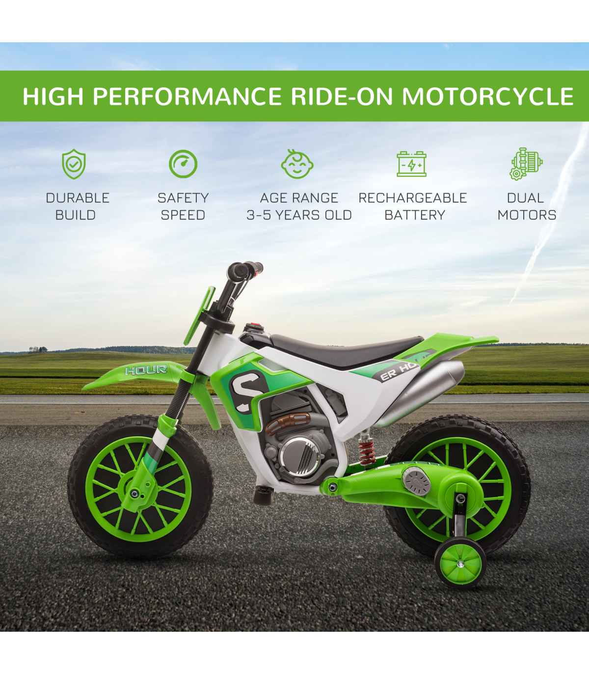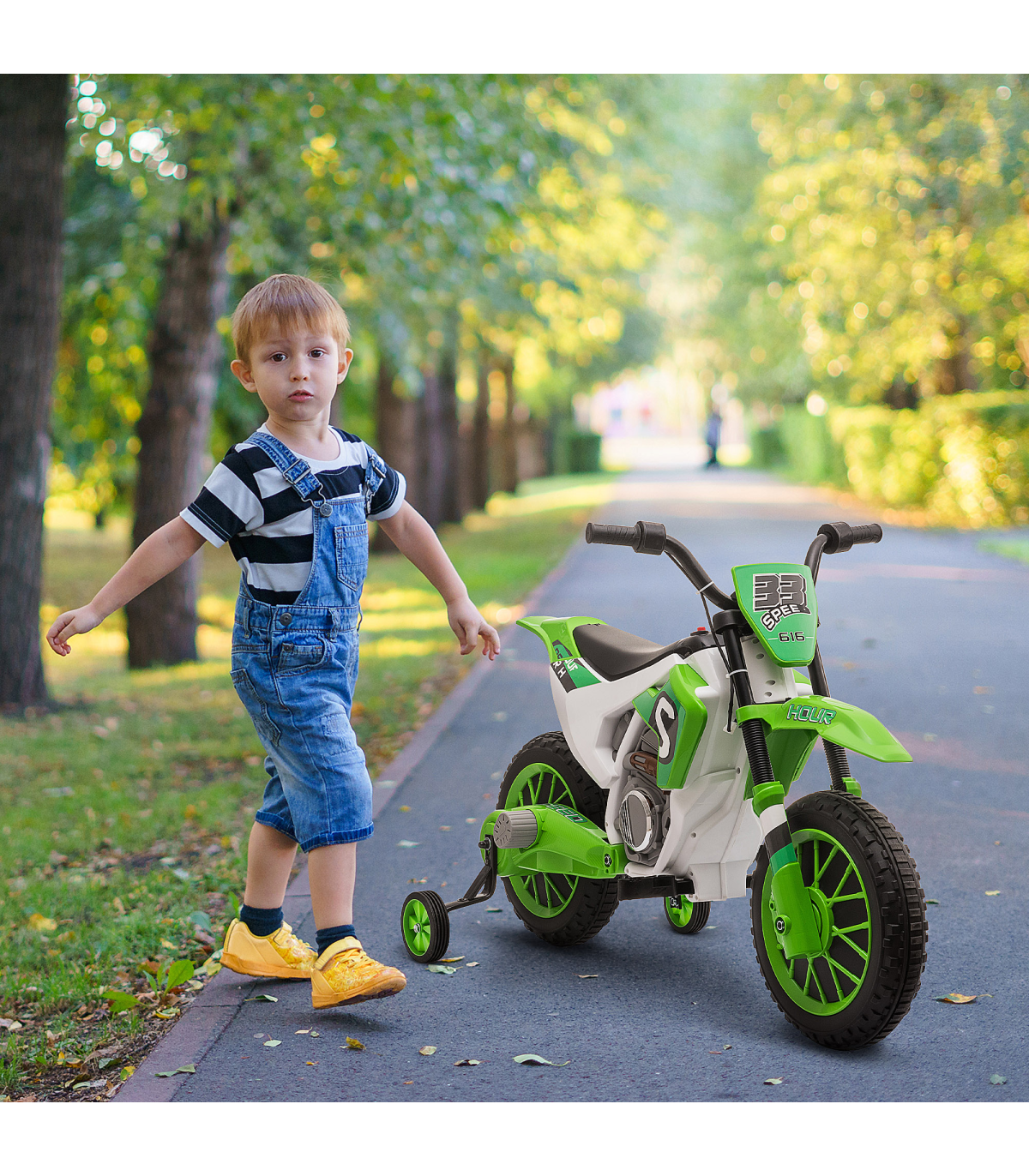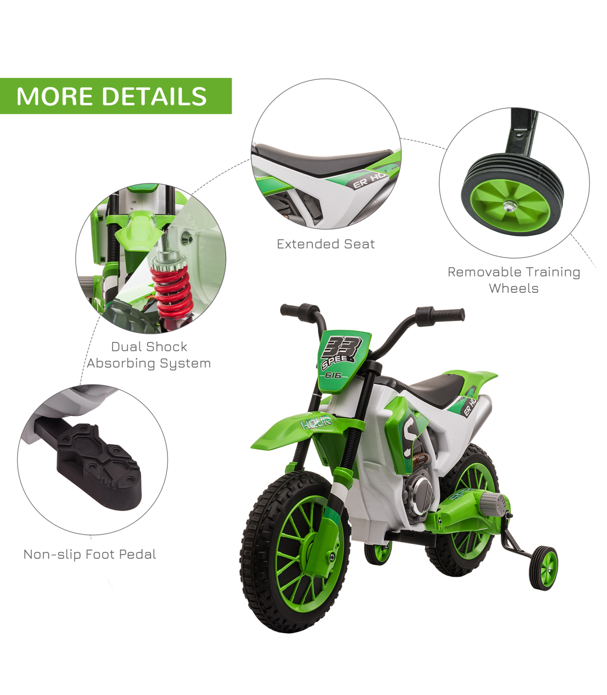- Safe to ride: Removable training wheels for extra balance. Take them off when more experienced with riding. This kids electric motorbike starts slow, while the shock absorbers keep the ride smooth.