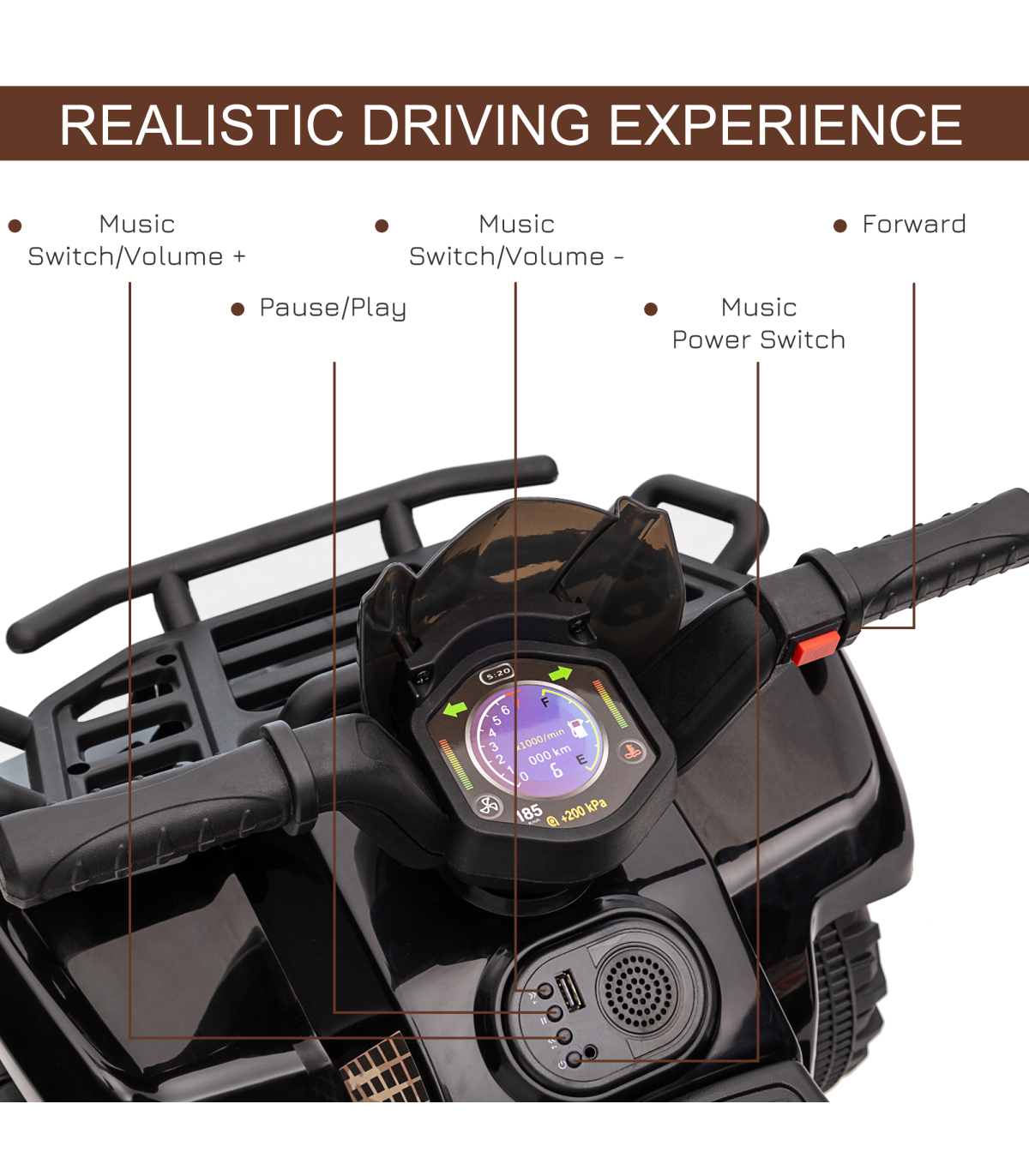 Kids Ride-on Four Wheeler ATV Car Black Electric 2 km/h 45 min Play 18-36 months