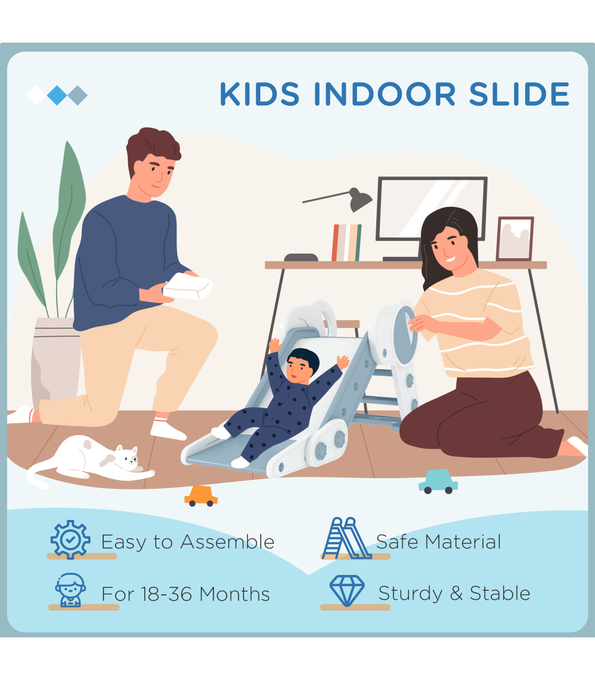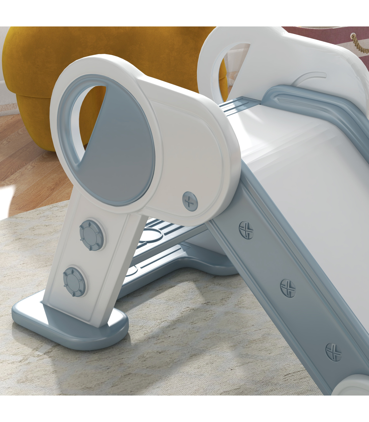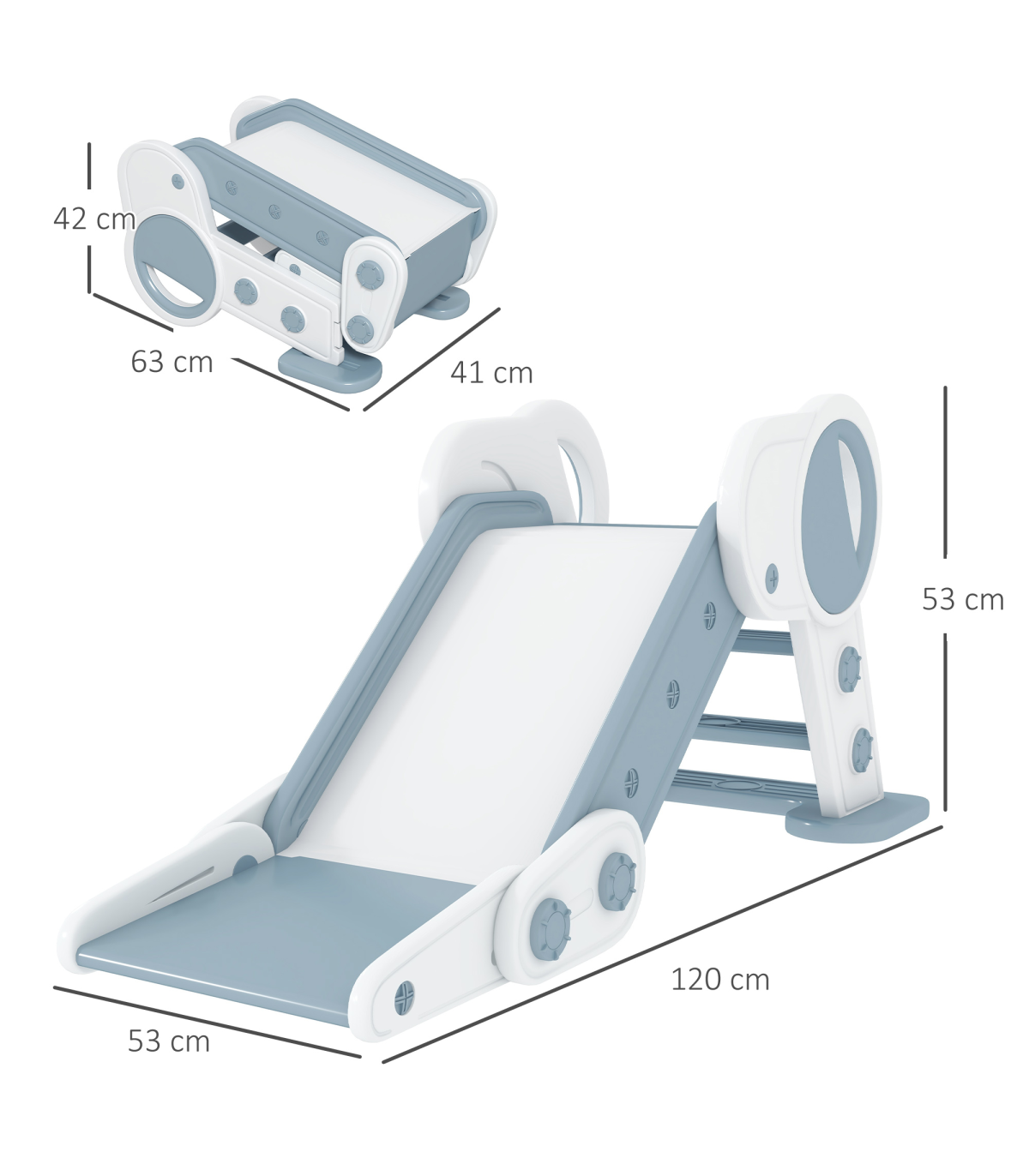 Bring boundless joy to playtime with this AIYAPLAY kids slide. Specially designed for children, they'll use the three-step ladder to easily climb up – the safety guards stop them from falling sideways. Once at the top, they'll enjoy sliding down in a safe and fun manner, thanks to its smooth surface and buffer zone. When playtime is over, fold the slide to save space, so it isn't a nuisance. Create special childhood memories, filling each day with fun and excitement.