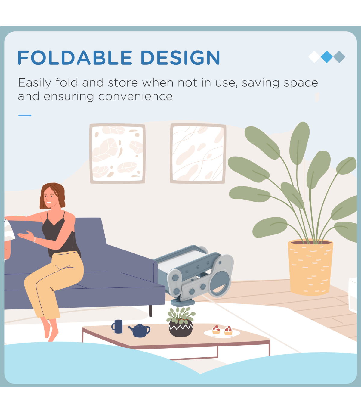 - Foldable design to save space when not in use