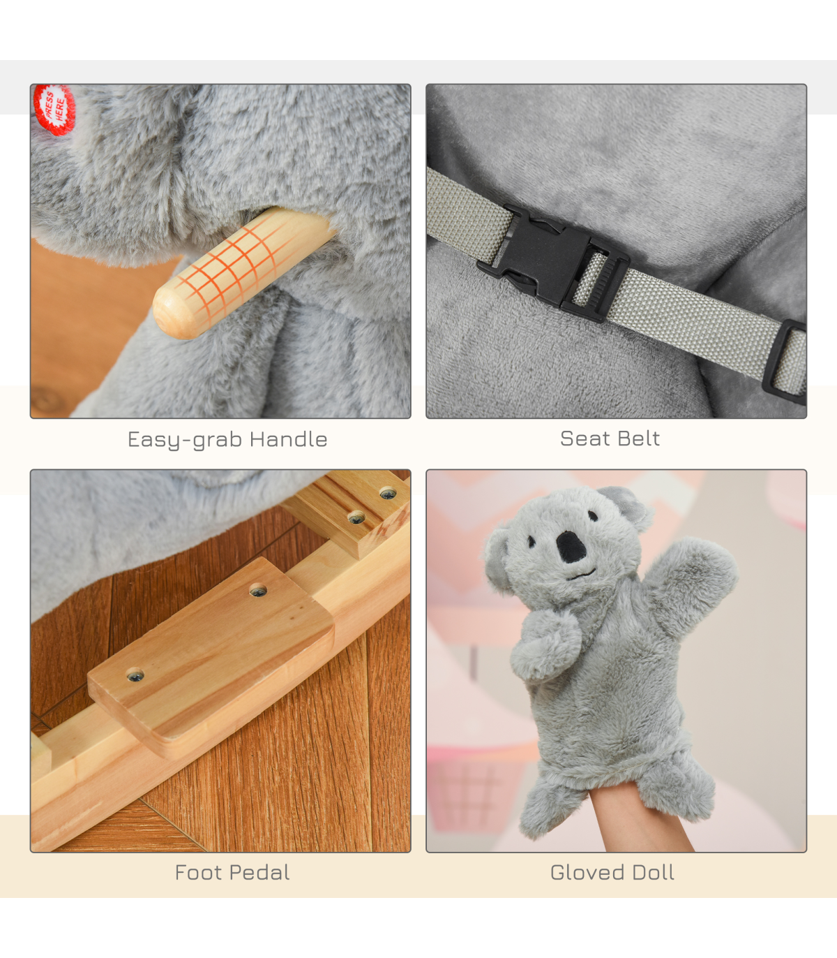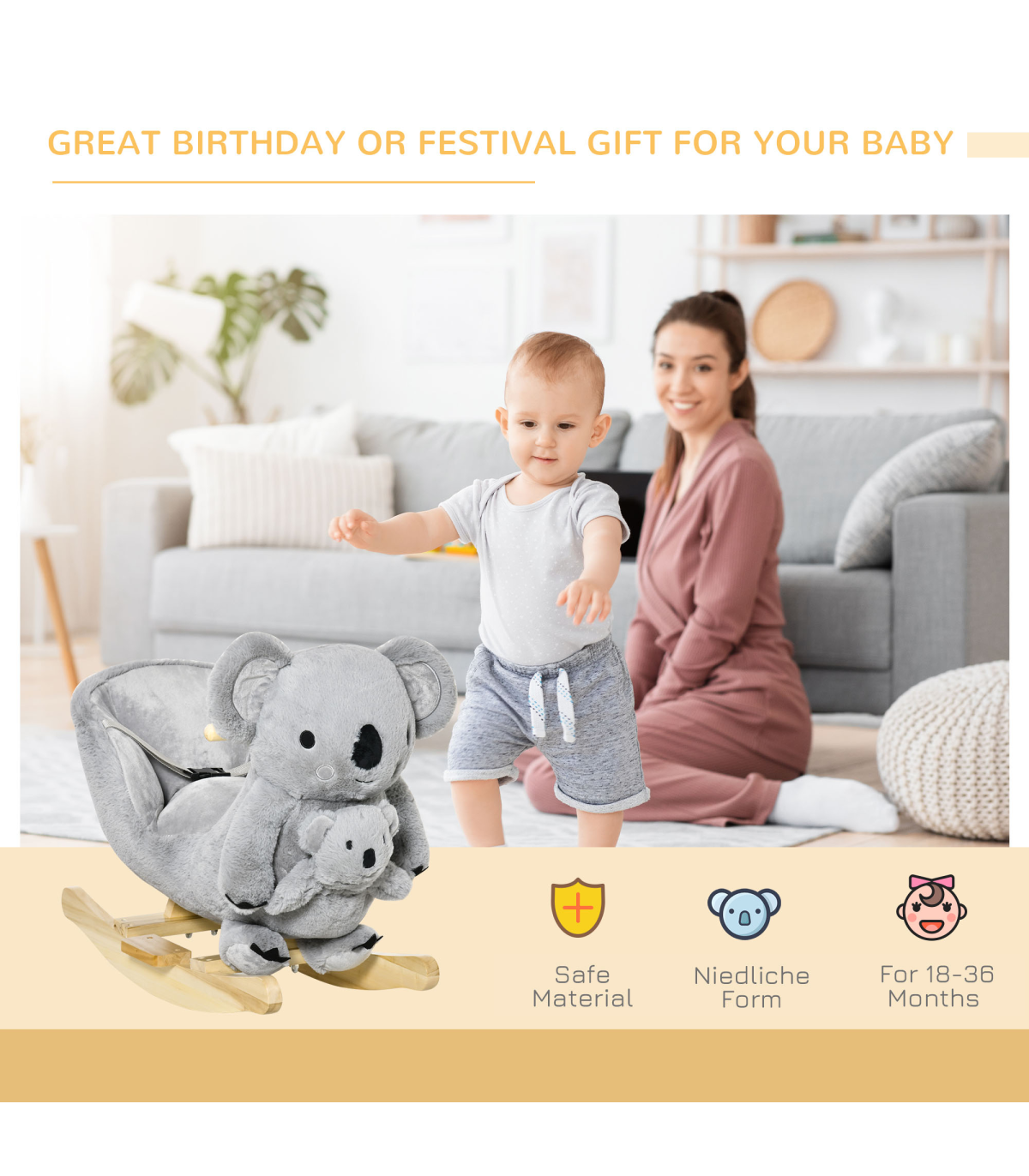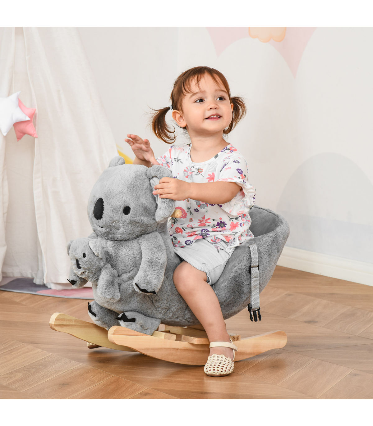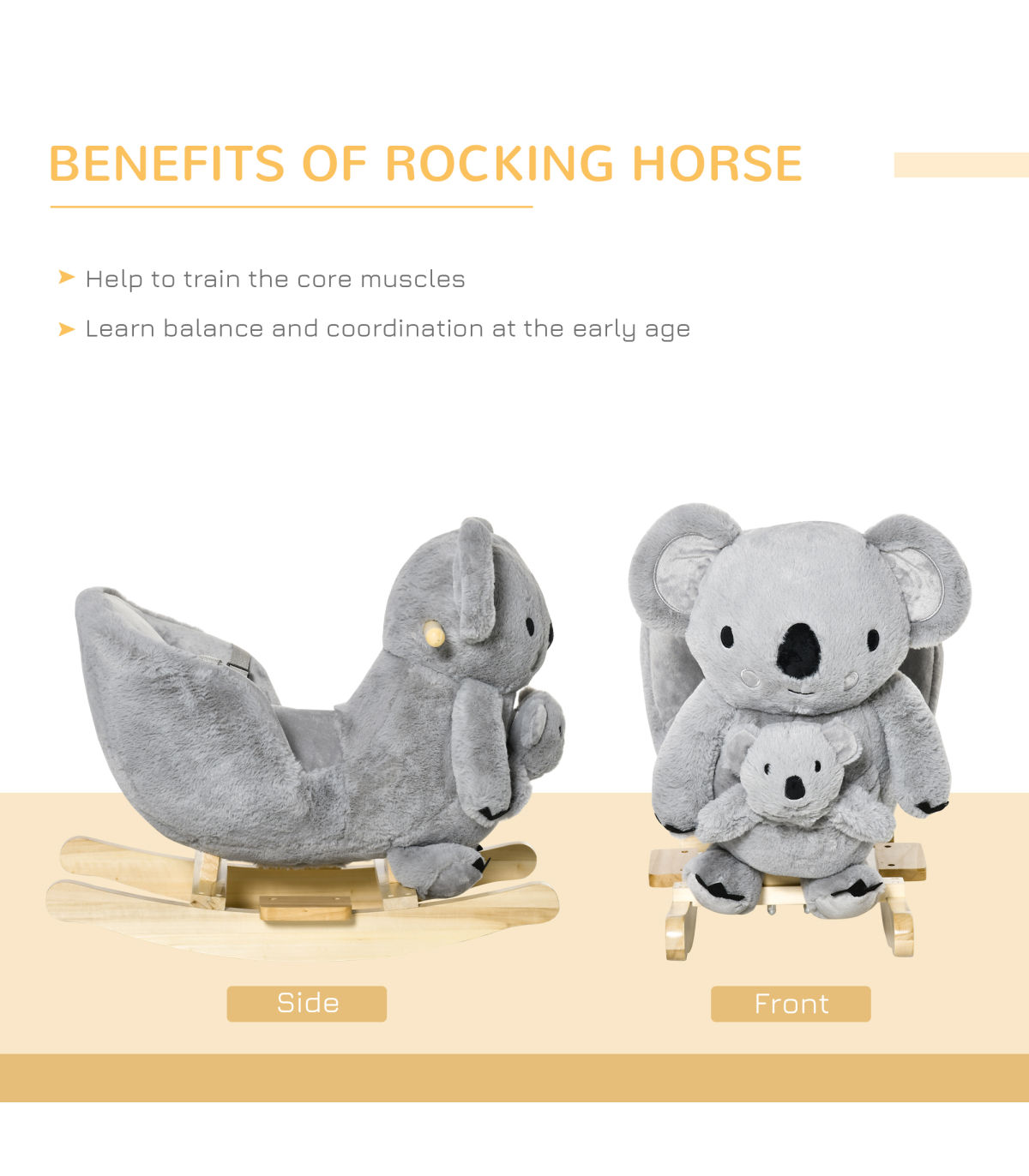 Please note that assembly is required for this toy. Let your child's imagination run wild with this adorable Kids Plush Ride-On Rocking Horse Koala-shaped Toy!