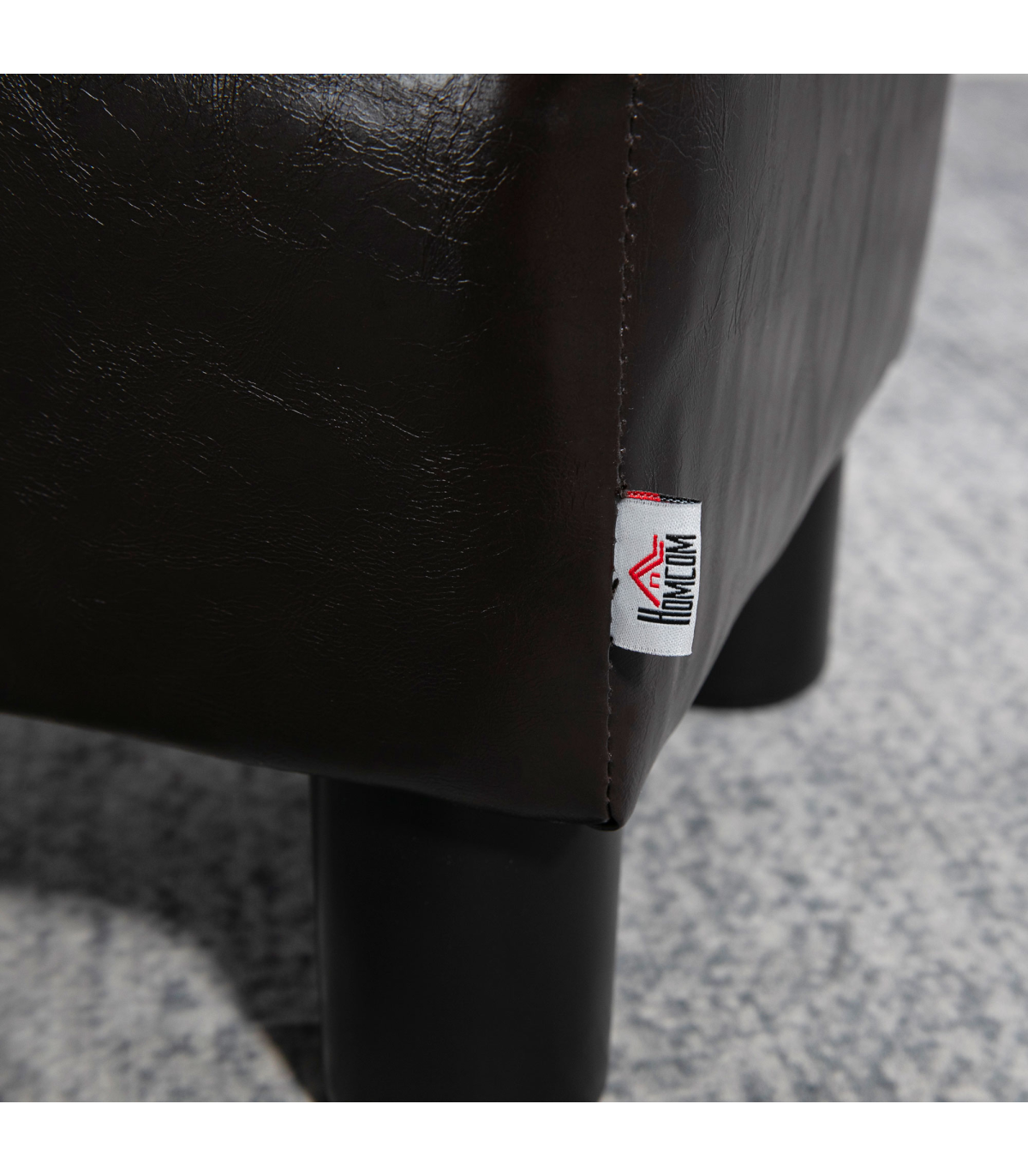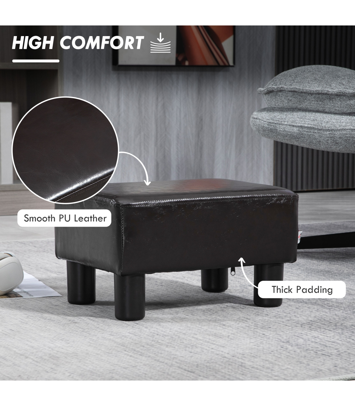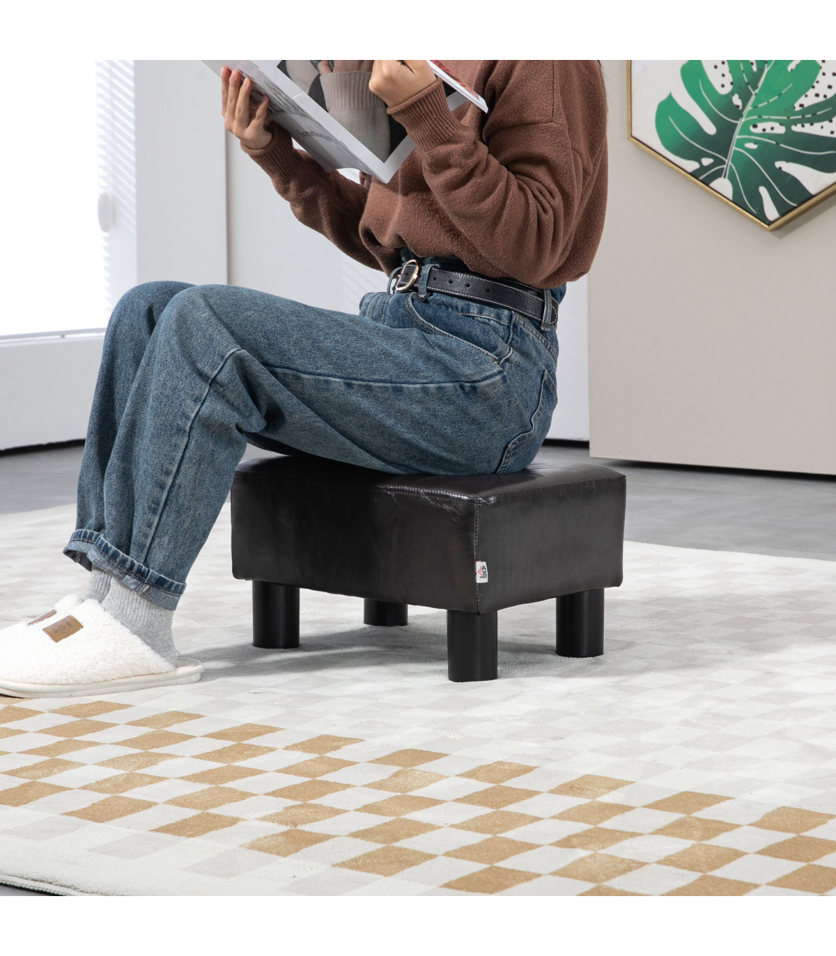 This HOMCOM Chic Faux Leather Footstool Ottoman Cube is the perfect addition to your living space. The wooden frame provides a strong core while the thick plastic legs offer excellent support. The foam padding ensures maximum comfort, making it ideal for relaxation. The stylish and versatile upholstery adds a touch of elegance to any room.