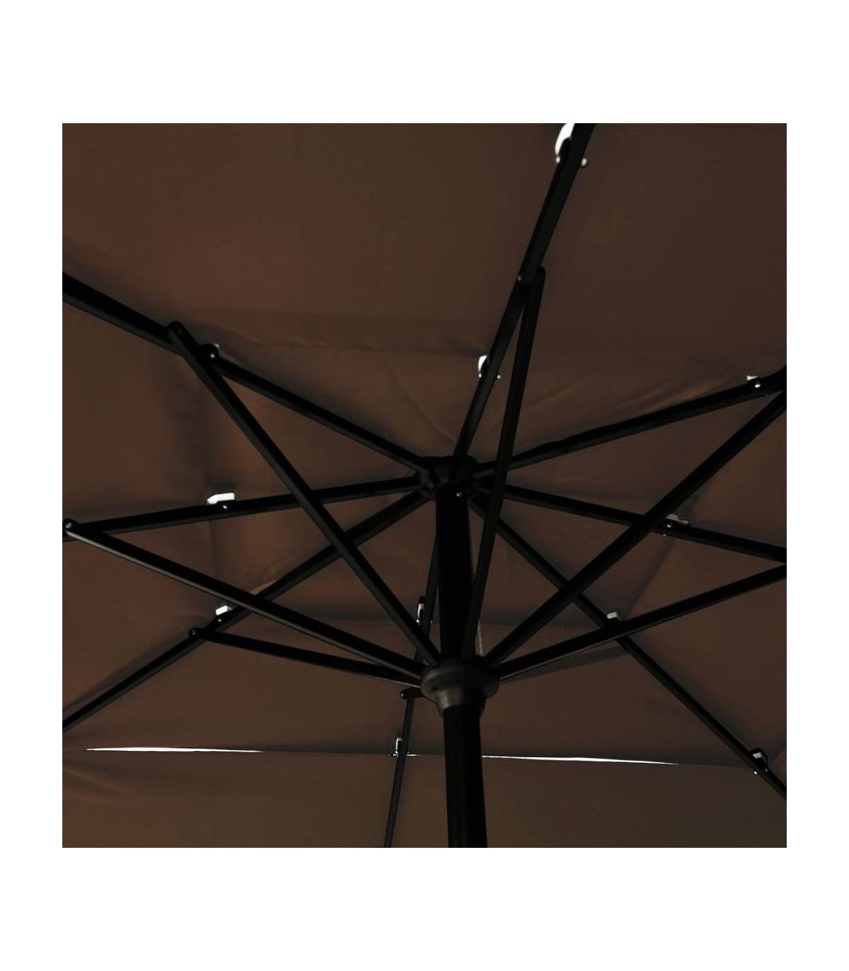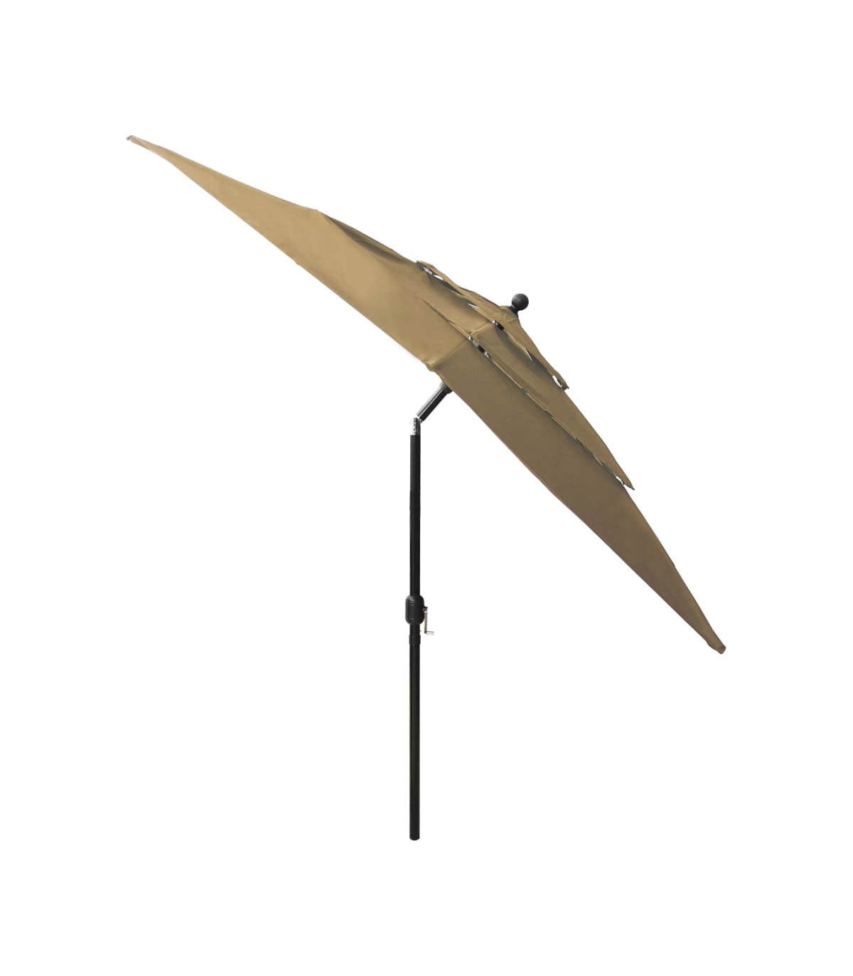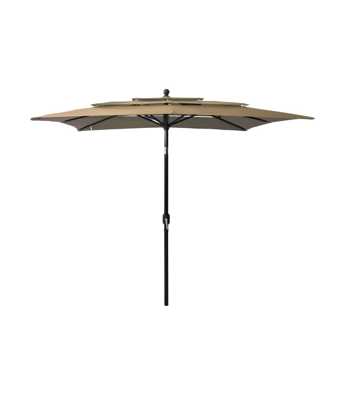 Enhance your outdoor living space with our Taupe 3-Tier Parasol, a perfect blend of style and functionality. Designed to offer optimum protection against harmful UV rays, this parasol features a high-quality, UV protective, and anti-fade polyester canopy. The robust powder-coated aluminium pole and ribs ensure stability and long-lasting use. Its unique 3-tier design not only adds an elegant touch to your garden, patio, or terrace but also facilitates better air circulation, keeping you cool on hot summer days. Equipped with a convenient crank and tilt mechanism, the parasol is easily adjustable, foldable, and portable, making it ideal for any outdoor setting. Whether mounted on a stand or in the middle of a table with a hole, it provides the perfect shade solution.