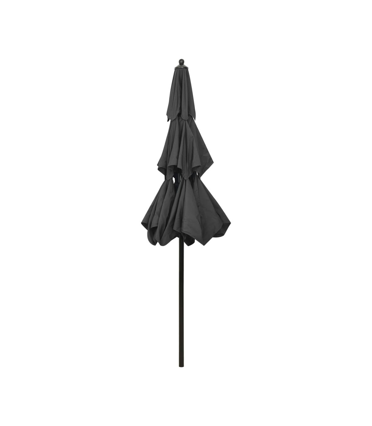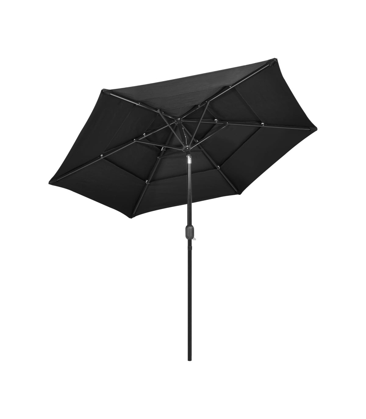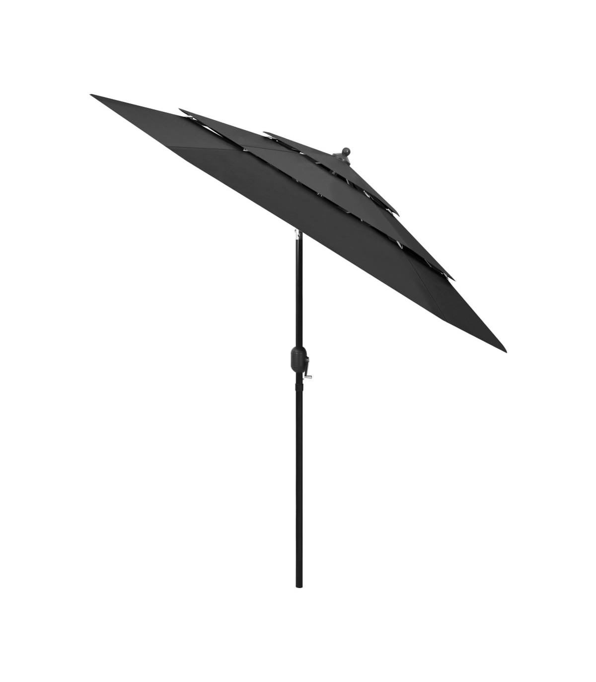 Introducing the Anthracite 3-Tier Parasol, a perfect addition to your garden, patio, or terrace. Designed to offer optimum protection against harmful UV rays and moisture, this parasol is crafted from UV protective and anti-fade polyester, ensuring long-lasting use and durability. The powder-coated aluminium pole and ribs provide added stability, making it a reliable shade provider for your outdoor spaces. With its easy-to-use crank and tilt mechanism, the parasol is both foldable and portable, offering versatility in mounting options. Whether you're looking to add a stylish shade solution to your outdoor furniture setup or need a durable cover that can withstand the elements, this 3-tier garden parasol is an excellent choice.