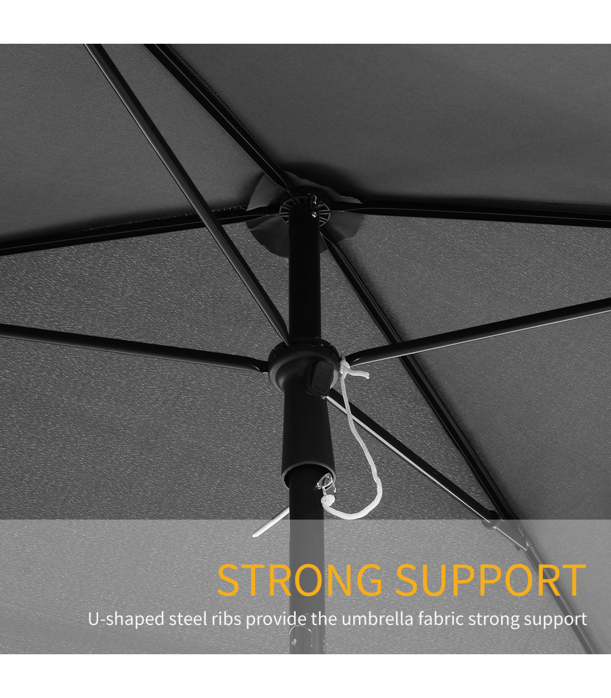 Make the sunny days even brighter with this parasol umbrella from Outsunny. Made from aluminium, the pole provides strength and durability for years to come and supports the large canopy shade with four ribs for extra strength. Adjustable to different angles, the shade can provide sun shelter in many different directions up to 2.5 meters in total, which is great for staying out all day long. It will perfectly protect you whilst you enjoy the warm and sunny weather.