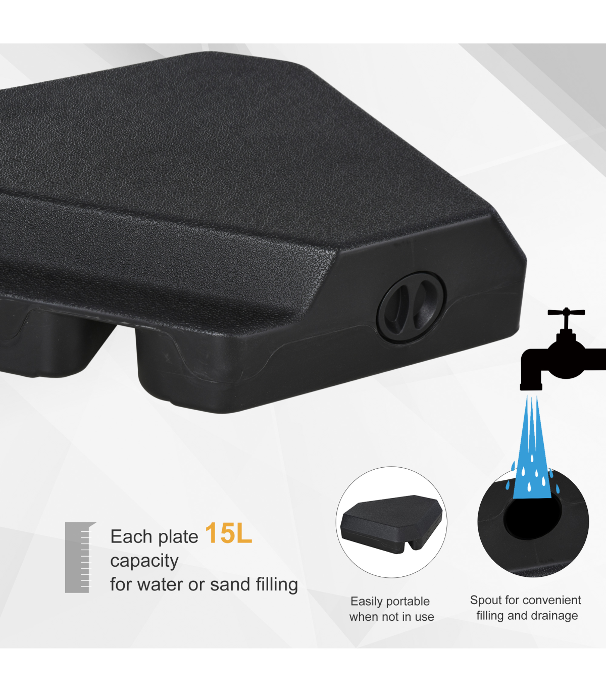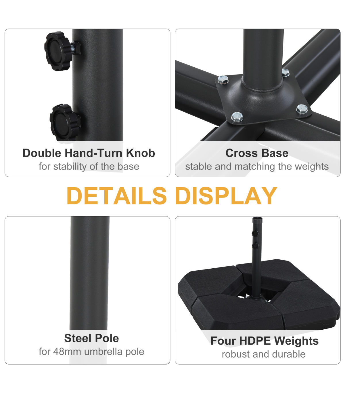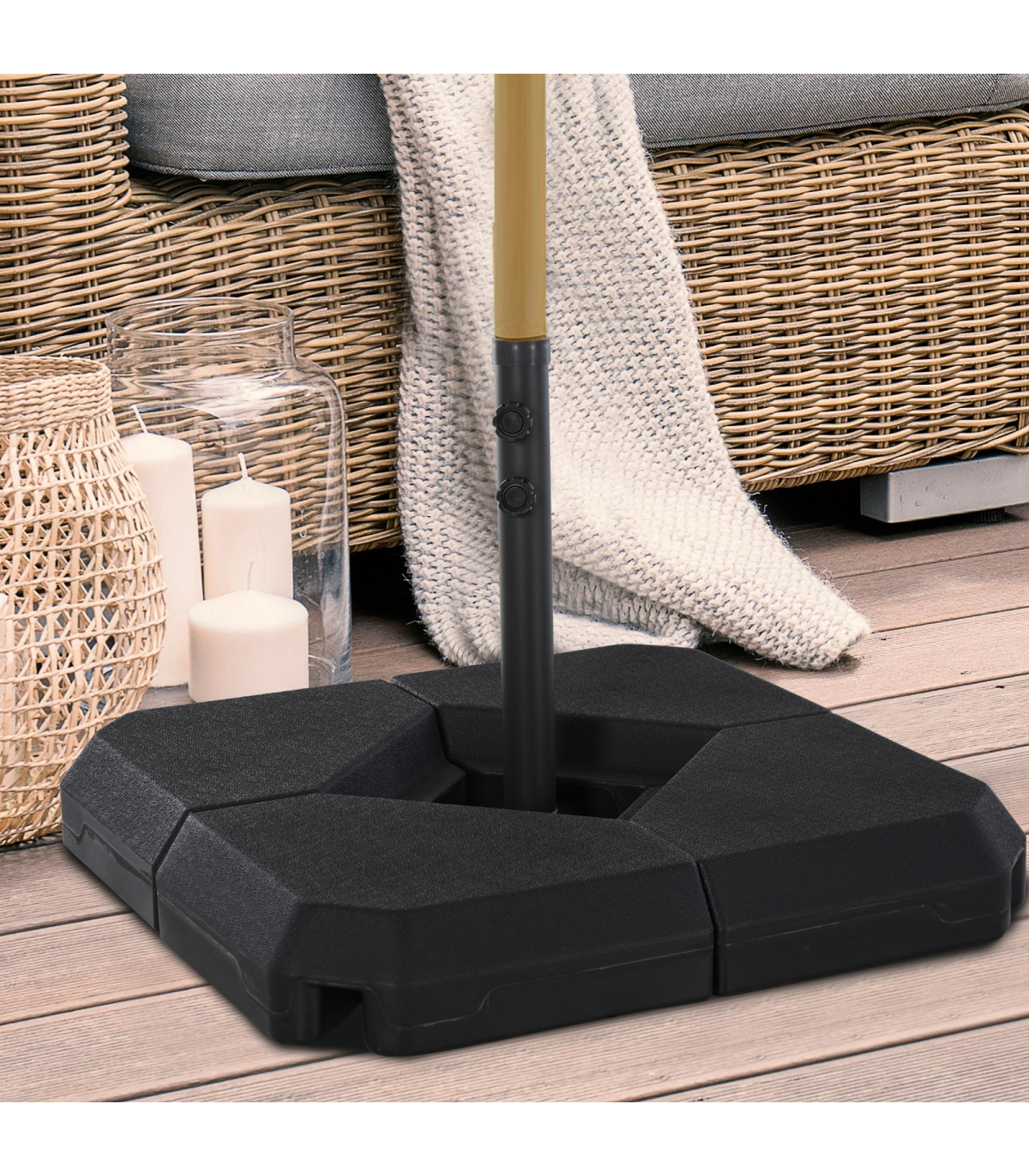 Enhance your outdoor space with the durable and stylish Outsunny HDPE 4-Part Fillable Parasol Base. Designed to ensure your parasol stays secure, this base combines functionality with aesthetics to provide the perfect support for your garden or patio umbrella.