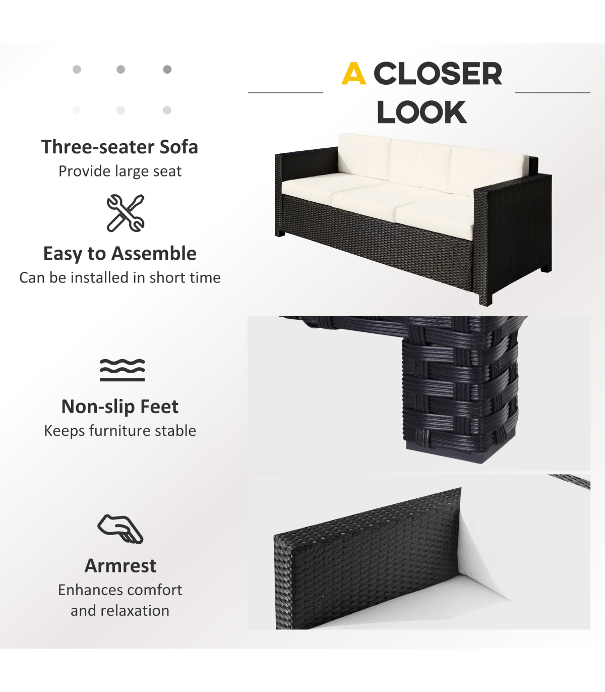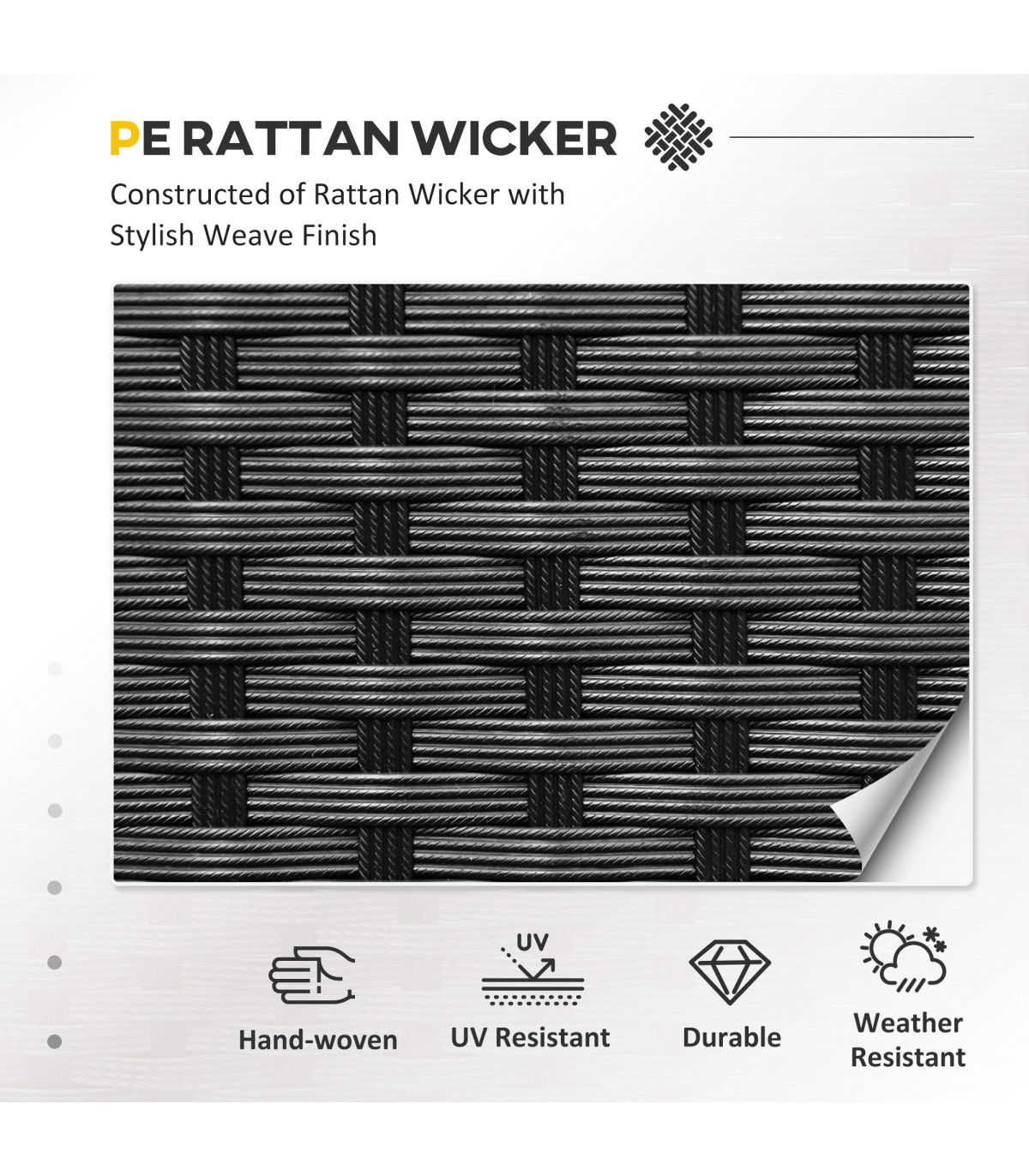 If you love to lounge outdoors, this three-seater outdoor sofa from Outsunny is the piece for you. Using a combination of a power coated and galvanised frame for the core, with plastic wicker, this piece has been made to last for years, with extra thick cushions on the seats and back. High on the back, with high armrests and longline seats for support, this sofa is finished with four feet to elevate and protect the main frame, as well as keeping it level and balanced on the floor.