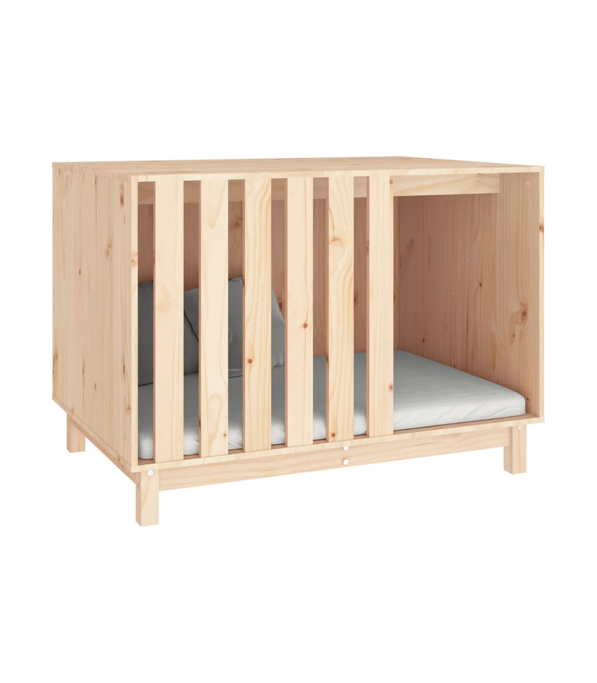 This super cool dog house will give your furry friends a comfortable place to snuggle in. Solid pine wood: Solid pine wood is a beautiful natural material. Pine wood has a straight grain, and the knots give the material its signature, rustic look.Stable frame: The wooden frame ensures sturdiness and stability.Practical design: This dog bed provides a comfortable place for your beloved dog to snuggle in.Simple design: Rectangular, simple without frills, the wooden pet bed feels especially suitable in minimalist living areas. Note:Each product comes with an assembly manual in the box for easy assembly.
