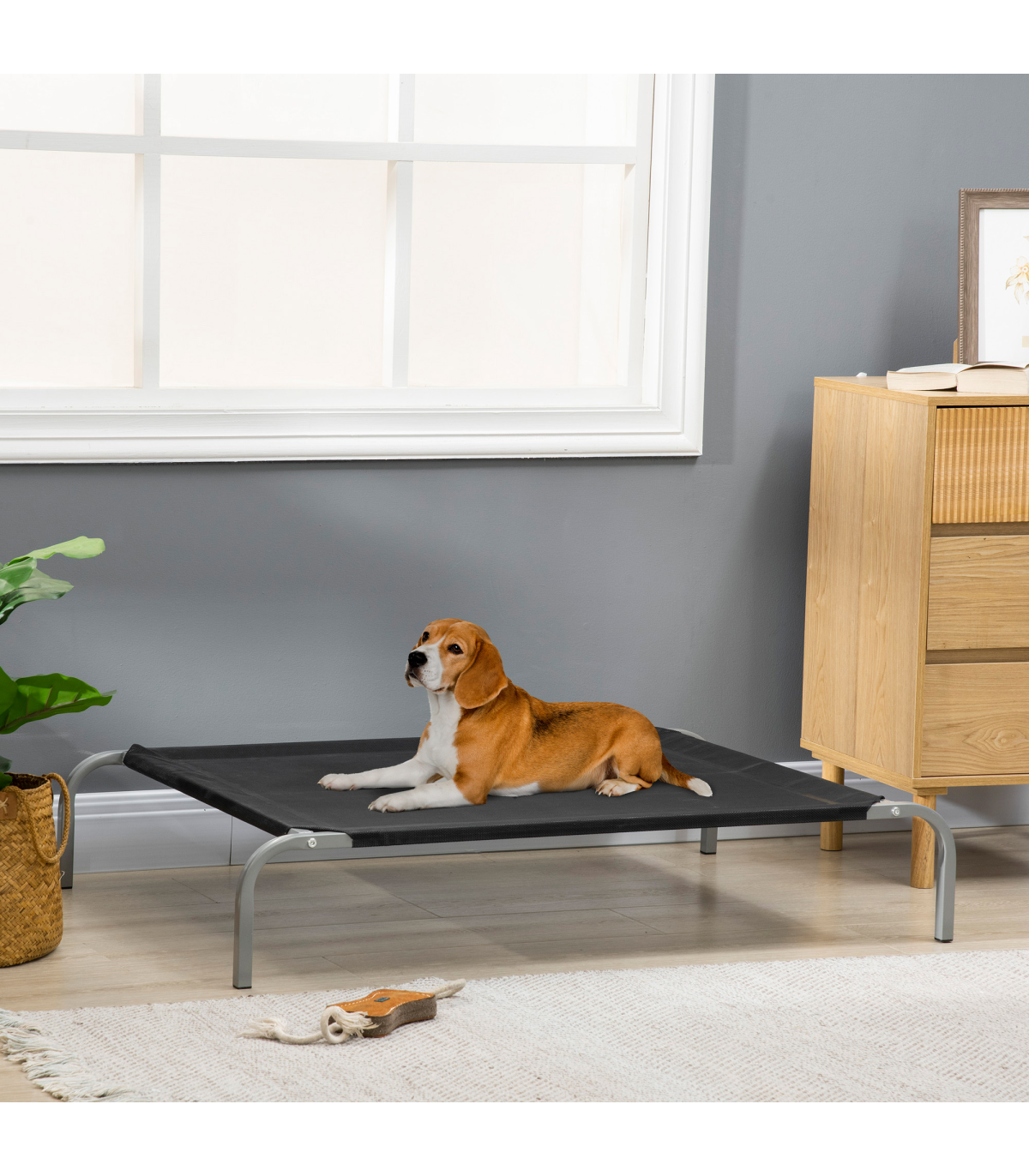 Pets will have a comfortable spot to relax, thanks to this PawHut cooling bed for dogs. Resting on four steel legs for stability, it's covered with mesh fabric for a soft touch, keeping pets pleasantly cosy. The material is hardwearing �C it is easy to maintain, so their space stays clean. This cooling dog bed can hold up to 22kg, suitable for medium and large dogs. So, whether it's the living room, garden or elsewhere, your pet will have a familiar spot to take the weight off their paws.